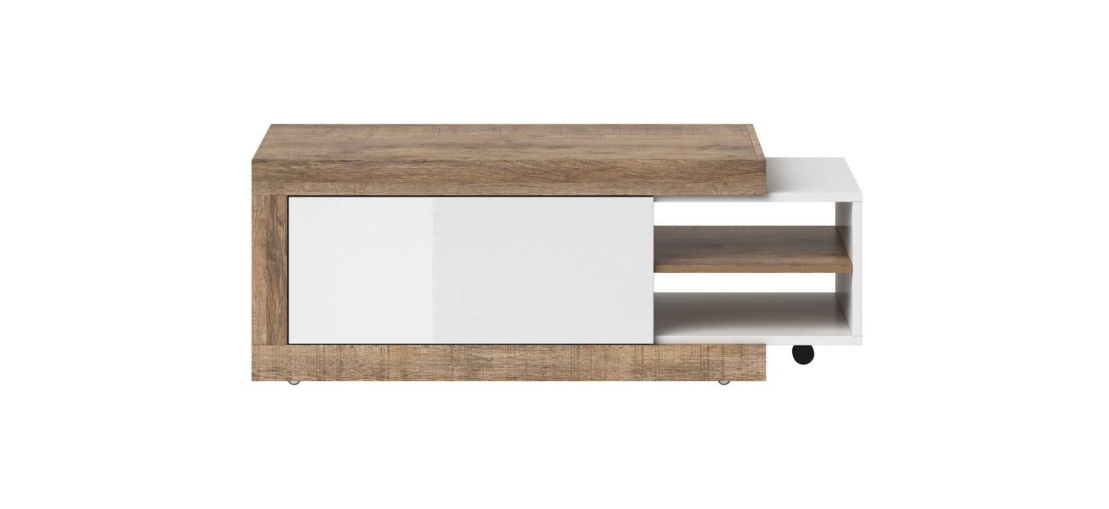 „Sintra“ kavos staliukas, 120 cm, blizgi balta / „Samdal“ ąžuolas