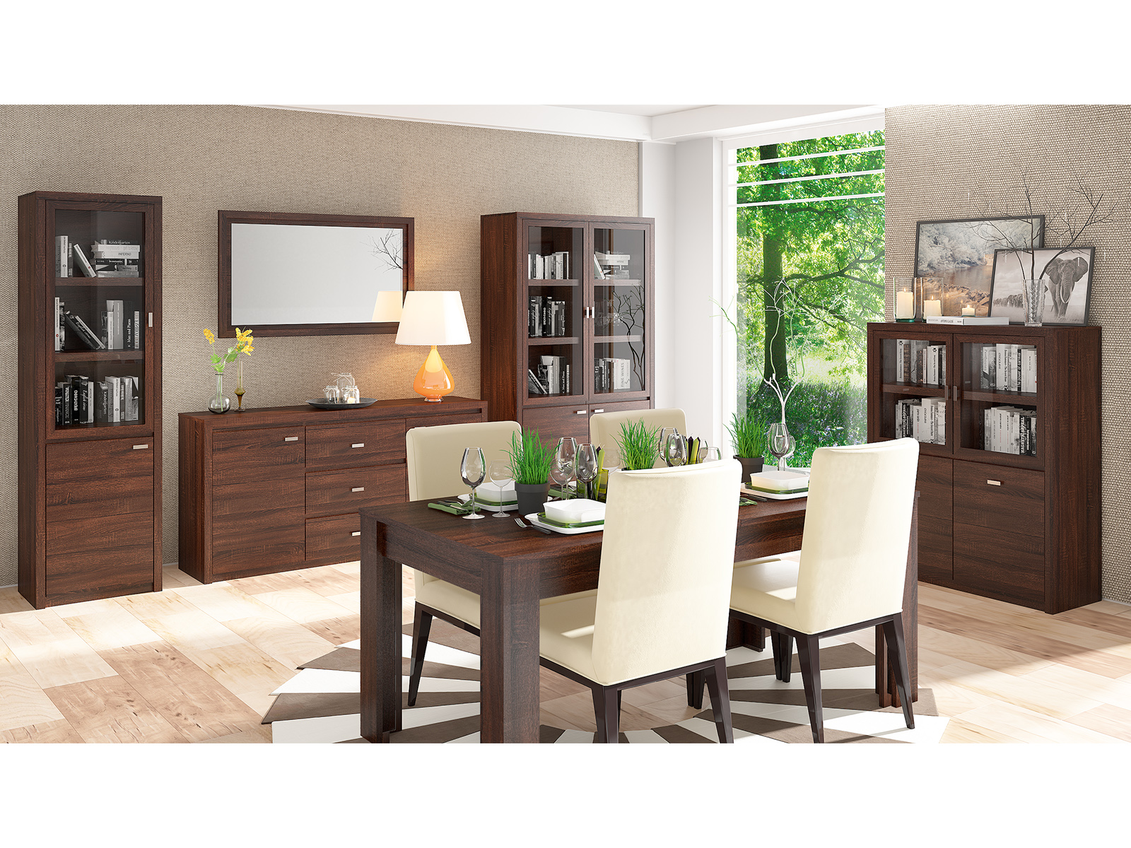 – vitrinose standartiškai yra laminuotos plokštės lentynos,