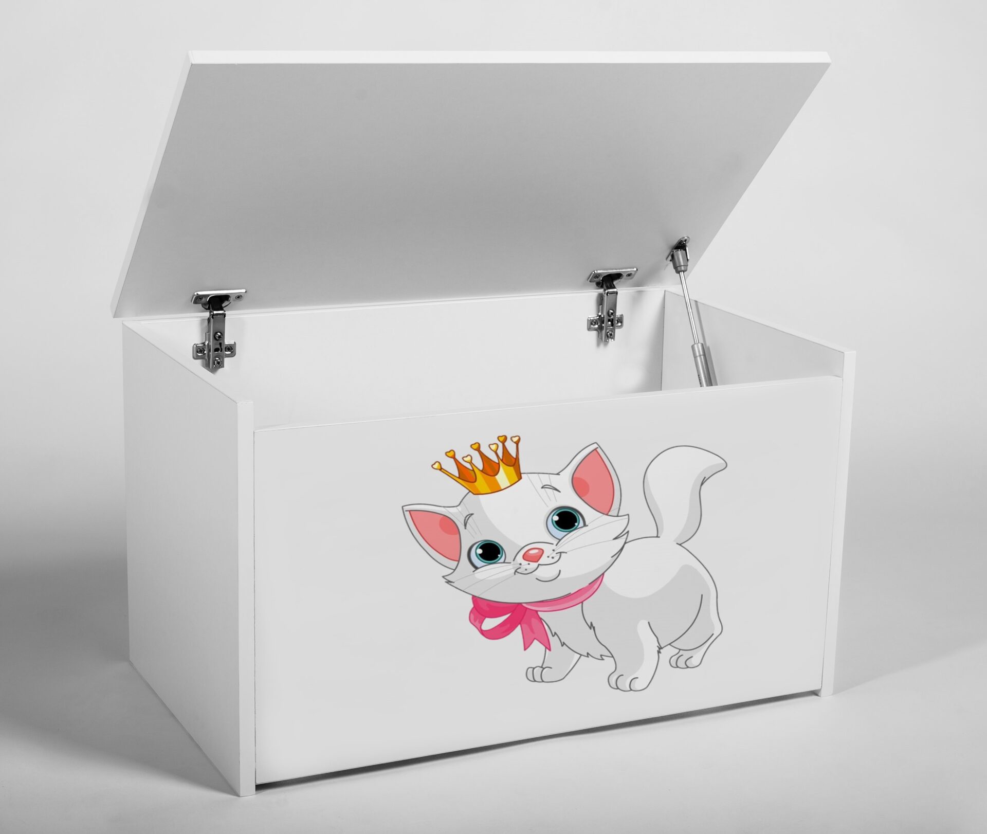 Žaislų skrynia DARIA – puiki vieta paslėpti įvairius jūsų vaiko lobius. Dėl lengvai naudojamo pakėlimo jūsų mažylis gali lengvai atidaryti ir uždaryti skrynią. Skrynios priekis yra baltos spalvos ir gali būti dekoruotas spalvingais raštais.