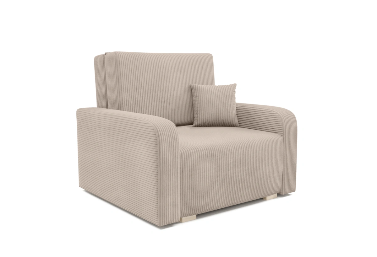 Standartiškai sofa komplektuojama su medinėmis priekinėmis kojelėmis.