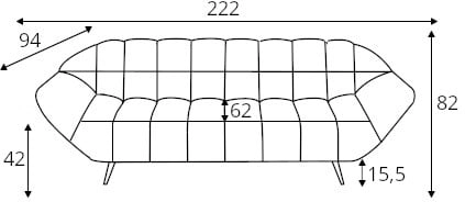 Įspūdinga trijų vietų „Gappa“ sofa, kurios matmenys – 222x82x94 cm. Dygsniuotas audinys ir elegantiškos, 15,5 cm aukščio metalinės kojelės suteikia jai lengvumo ir elegancijos. Sėdynės užpildas – A tipo banguotos spyruoklės, poliuretano putos HR30040, N30. Atlošo užpildas – poliuretano putos T1818, T2130. Apmuštas atlošas. Kolekcijoje taip pat yra dviejų vietų sofa, kampinė sofa su elektriniu sėdynės gylio reguliavimu ir pufas.