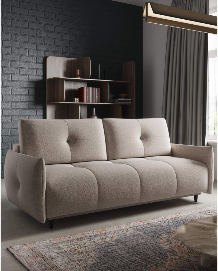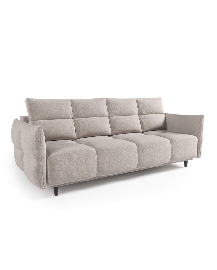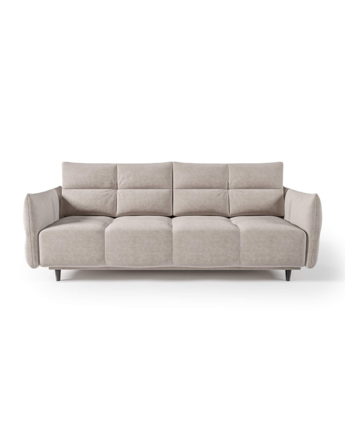 Žavingai elegantiška ir neįtikėtinai patogi „Comforteo“ „Bolero“ sofa pasižymi sėdynės pagalvėlėmis, užpildytomis vingiuotomis spyruoklėmis, „Bonnell“ spyruoklėmis ir HR tipo didelio elastingumo putomis (PUR sistema). Šis sprendimas garantuoja patogų poilsį ir ramų miegą. Sofa turi kasdienio DL miego funkciją, leidžiančią lengvai ir patogiai transformuoti patogią sofą į erdvią vietą tiek nakties, tiek dienos poilsiui. Praktiškame ir erdviame patalynės skyriuje taip pat galima susidėti papildomus daiktus iš spintos ir komodos. Subtiliai siūtos ir dygsniuotos sėdynės ir atlošo pagalvėlės, taip pat porankiai su apvadais pabrėžia modernų baldų charakterį ir suteikia prestižinio elegancijos akcentą. Sofa stovi ant tiesių juodų metalinių kojų. Sofa siūloma su plačiu apmušalų audinių pasirinkimu, kurį galite rasti pas produktų kūrėją.