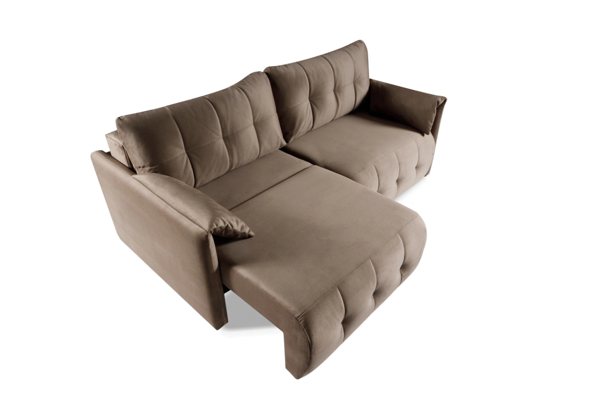 Išplėsdami dešinę arba kairę pusę miegojimui, galite sukurti dešiniarankiams arba kairiarankiams pritaikytą kampinę sofą.