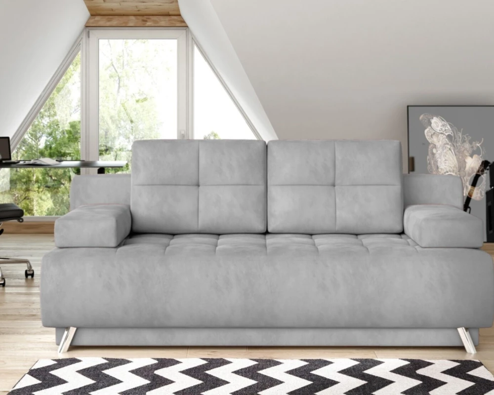 Stilinga „Oslo“ sofa su išskirtiniu dygsniuotu audiniu yra puikus madingo dizaino, kompaktiško dydžio ir funkcionalumo derinio pavyzdys. Ji puikiai telpa mažose erdvėse, o dėl miegojimo funkcijos su DL automatinio atlošo sistema suteiks galimybę retkarčiais pamiegoti. Miegamosios dalies matmenys – 144 × 196 cm. Po sofos sėdyne yra praktiška 185 x 60 x 27 cm dydžio skyrius patalynei ir kitiems tekstilės gaminiams laikyti. Sofos atlošas apmuštas. Kojelių aukštis – 12 cm.