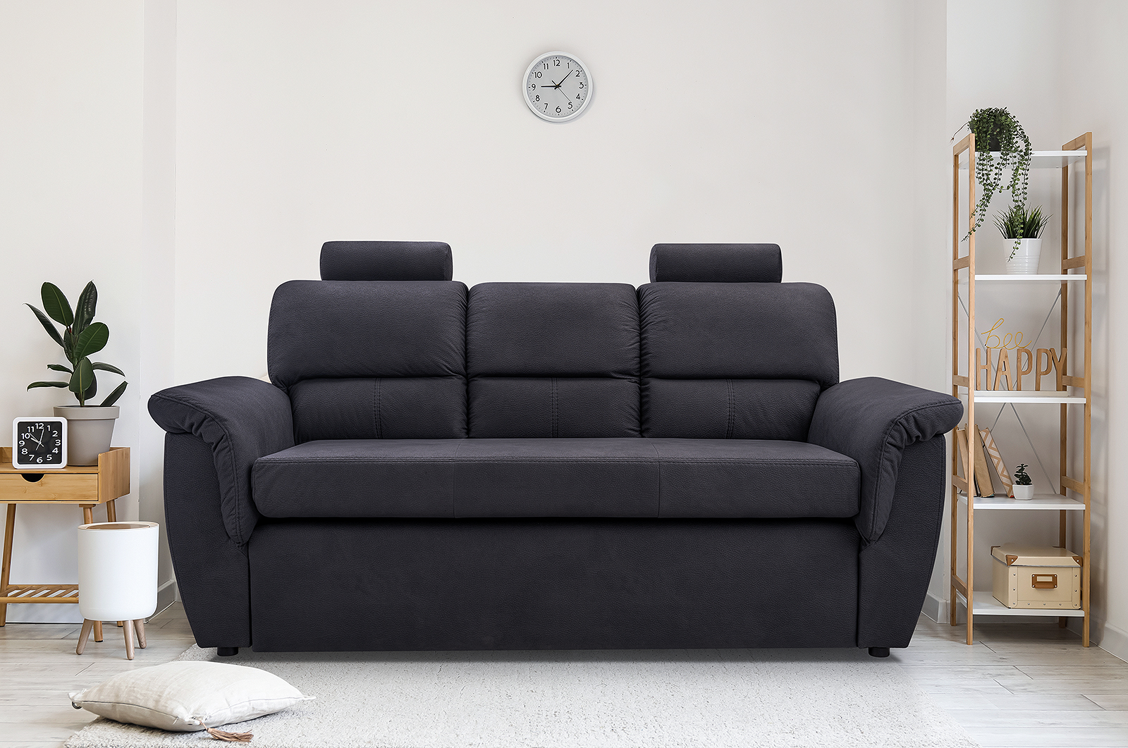 Techniniu audiniu aptrauktas atlošas, 2 reguliuojami galvos atlošai, nedidelis patalynės skyrius ir patogūs porankiai.