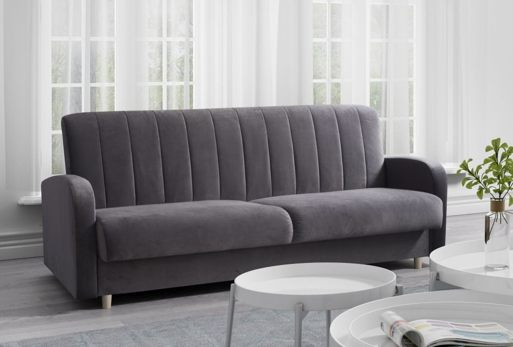 „Ebro“ skandinaviška sulankstoma sofa – tai minimalistinio ir elegantiško dizaino skandinaviškos sofos pavyzdys. Galima rinktis iš daugybės spalvų ir audinių, todėl ji puikiai dera prie jūsų kambario interjero. Ji pasižymi užapvalintais kraštais, aptakia forma ir subtiliu charakteriu. Viduje yra erdvus patalynės skyrius, kuriame rasite papildomos vietos rečiau naudojamiems daiktams ar atsarginei patalynei laikyti. Aukštos kokybės medžiagų naudojimas daro ją ne tik patogią, bet ir labai patvarią. Ji išlaikys savo gražią išvaizdą ilgus metus. Apmušalai atsparūs dėvėjimuisi. „Ebro“ skandinaviška sulankstoma sofa gali tapti jūsų interjero akcentu arba subtiliu sienos akcentu, priklausomai nuo pasirinktos spalvų gamos ir aksesuarų. Išskleista ji suteikia patogią miegojimo vietą ir puikiai tinka svečių kambariams ir jaunimo kambariams.
