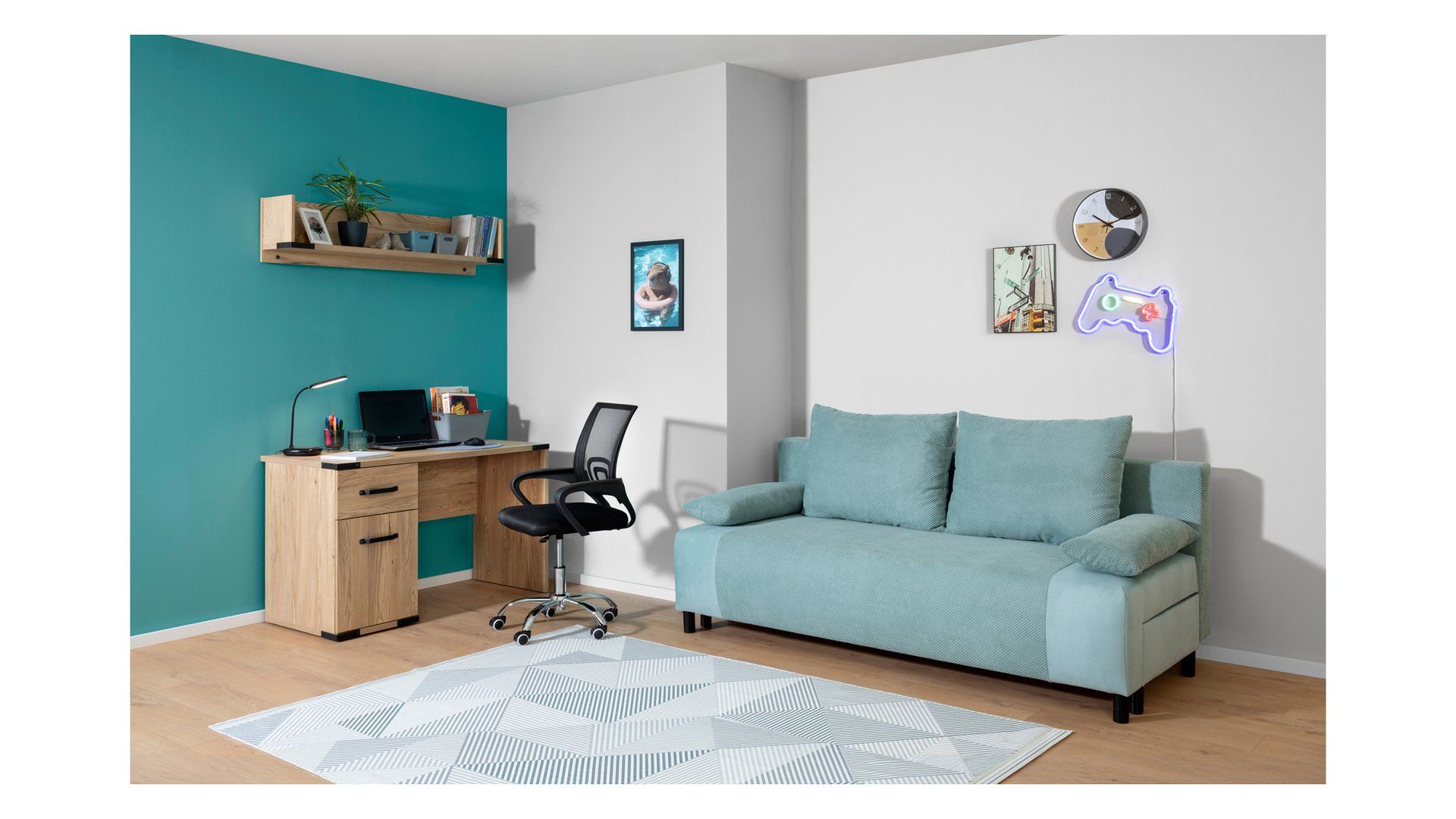 „Nius“ sofa – kompaktiškas komfortas elegantiškos mėtinės žalios spalvos. Komfortas ir funkcionalumas. „Nius“ sofa siūlo stebinantį komfortą, nepaisant kompaktiškų matmenų. Plati sėdynė ir dvi didelės atlošo pagalvėlės suteikia patogią vietą kasdieniam poilsiui. Putplasčio ir „bonell“ spyruoklių užpildas garantuoja lankstumą ir ilgaamžiškumą net ir intensyviai naudojant. Praktinės savybės. Dėl DL mechanizmo sofą galite lengvai išskleisti, sukurdami 141 x 194 cm miegojimo erdvę. Paslėptas patalynės skyrius po sėdyne leidžia patogiai laikyti antklodes, pagalves ar patalynę, todėl daug lengviau palaikyti tvarką mažose erdvėse. Dizainas ir stilius. Subtilus „Onega 6 Mint“ ir „Manila 11 Mint“ derinys apmušalams suteikia interjerui gaivumo ir subtilios elegancijos. Mėtų atspalvis pašviesina erdvę, sukurdamas malonią, ramią atmosferą. Modernus dizainas ir subalansuotos proporcijos paverčia „Nius“ sofą puikiu papildymu svetainėje, jaunimo kambaryje ar mažame bute. Savybės: miegojimo funkcija su DL automatiniu mechanizmu, leidžiančiu greitai ir lengvai išskleisti; patalynės skyrius papildomam daiktų laikymui. Kompaktiški matmenys mažesnėms erdvėms. Užpildas: putplastis + „bonell“ spyruoklės komfortui ir ilgaamžiškumui. Dvi didelės atlošo pagalvėlės patogiam nugaros atramai. Modernus dizainas, lengvas ir universalus. Matmenys: 194 x 94 x 94 cm (plotis x gylis x aukštis). Miegamoji erdvė: 141 × 194 cm. Santrauka: „Nius“ sofa – puikus sprendimas mažoms erdvėms, kur svarbus kiekvienas centimetras. Kompaktiška, tačiau visiškai funkcionali, ji puikiai tinka ir kaip patogi sėdynė, ir kaip praktiška lova kasdieniam naudojimui. Mėtų spalvos apmušalai suteikia gaivos ir lengvumo pojūtį, todėl „Nius“ yra pasirinkimas tiems, kurie ieško stiliaus ir komforto pusiausvyros.