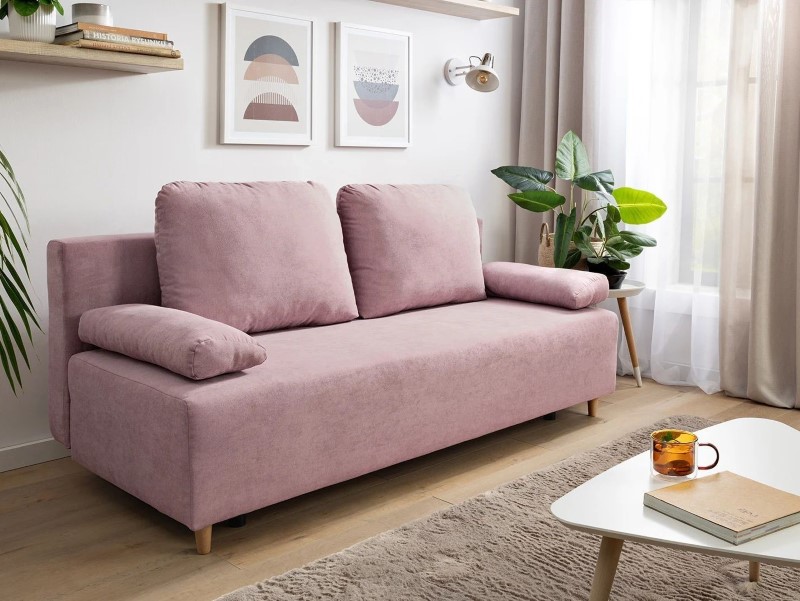 „Sun LUX 3DL“ sofa – paprastas dizainas, didelis funkcionalumas. Paprasti baldai, tokie kaip „Sun LUX 3DL“ sofa, yra puikus pasirinkimas interjero dizainui dėl savo nesenstančio stiliaus ir universalumo. Ši sofa-lova puikiai tinka svetainei, paauglio kambariui ar net vieno kambario butui. Kompaktiški matmenys ir didelis funkcionalumas daro ją praktišku sprendimu mažesnėms erdvėms. Patogumas ir funkcionalumas: „Sun LUX 3DL“ sofos matmenys yra 193 x 92 cm, todėl ji tinka net mažesnėms erdvėms ir suteikia vietos trims žmonėms. Kasdienį komfortą garantuoja sėdynės ir čiužinio „bonell“ spyruoklės ir putplastis, kurie suteikia tolygų atramą. Atlošo pagalvėlės, užpildytos pjaustytomis putomis ir silikonu, puikiai prisitaiko prie kūno ir užtikrina patogų poilsį. Praktinės savybės: Sofa turi pakėlimo mechanizmą, kuris leidžia greitai ir patogiai transformuoti ją į lovą. Miegamosios dalies matmenys yra 139 x 191 cm, todėl patogiai gali miegoti du žmonės. Papildomas privalumas – didelis patalynės skyrius, kuriame galima laikyti antklodes, pagalves ir kitus tekstilės gaminius, padedant tvarkingai susidėti daiktus. Dizainas ir stilius: „Sun LUX 3DL“ sofa pasižymi paprasta, modernia forma, kuri lengvai prisitaiko prie įvairių interjero stilių. Pakeltos medinės kojelės suteikia baldui lengvumo, supaprastina valymą ir padidina jo patvarumą. Rožinio atspalvio „Enjoy 19 Flamingo“ audinys suteikia sofai subtilią ir elegantišką išvaizdą, puikiai papildydamas modernų ir minimalistinį interjero dizainą. Savybės: Sofa su miegojimo funkcija ir patalynės dėže. Pakėlimo tipo atlošo mechanizmas – greitas ir lengvas išskleidimas. „Bonell“ spyruoklės sėdynėje ir čiužinyje – vienodas, patogus miegojimo paviršius. Didelė patalynės dėžė – papildoma daiktų laikymo vieta. Kompaktiški matmenys – idealiai tinka mažoms erdvėms. Pakeltos medinės kojelės – lengvesnis valymas ir didesnis patvarumas. 2 nugaros atlošo ir 2 porankių pagalvėlės papildomam komfortui. Santrauka: „Sun LUX 3DL“ sofa yra puikus sprendimas tiems, kurie vertina paprastumą, funkcionalumą ir stilių. Kompaktiški matmenys, lengvai naudojamas atlošo mechanizmas ir didelė miegojimo erdvė daro ją ne tik patogią, bet ir praktišką. Dėl „Enjoy 19 Flamingo“ audinio ir medinių kojelių sofa suteiks jūsų interjerui modernumo ir elegancijos, sklandžiai derės prie įvairių interjero stilių.