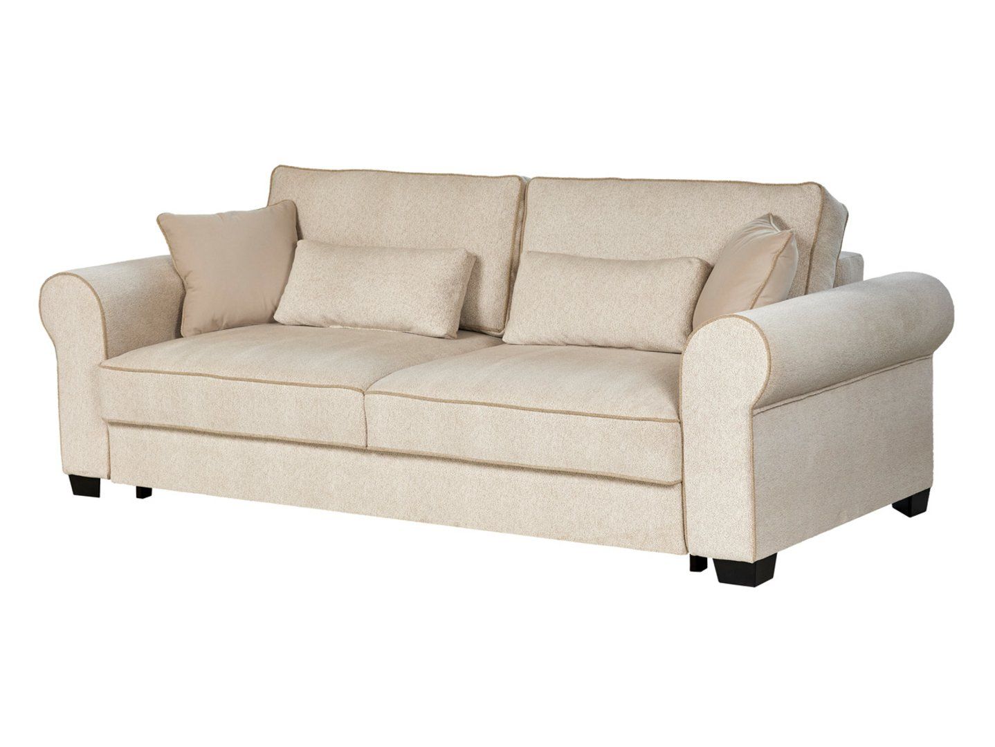 „Elizabeth“ sofa – klasikinė elegancija ir patogumas viename. Patogumas ir funkcionalumas. „Elizabeth“ sofa puikiai tinka tiems, kurie nori suderinti jaukią atmosferą su kasdienio naudojimo patogumu. Dėl DL tipo atlošo mechanizmo vos per kelias akimirkas ją galite paversti erdvia 165 x 198 cm lova. Putplasčio užpildas kartu su banguotomis ir „bonell“ spyruoklėmis suteikia optimalią kūno atramą, užtikrindamas komfortą tiek sėdint, tiek miegant. Praktinės savybės: patalynės skyrius po sėdyne leidžia lengvai laikyti antklodes, pagalves ir apklotus. Keturių dekoratyvinių pagalvėlių komplektas padidina komfortą ir suteikia interjero dizainui išskirtinumo. Dizainas ir stilius: klasikinę „Elizabeth“ sofos formą paryškina minkštas „Raven 22“ audinio apmušalas ir dekoratyvinės siūlės. Apvalūs porankiai suteikia jai elegantišką charakterį, o didelis atlošas ir dekoratyvinės pagalvėlės suteikia svetainei jaukumo ir šilumos. Savybės: Trivietė sofa su miegojimo funkcija, Miegamasis plotas: 165 x 198 cm, DLS tipo atlošo mechanizmas, Sėdynė: porolonas, Bonnell spyruoklės ir banguotos spyruoklės, Patalynė, Keturios dekoratyvinės pagalvėlės komplekte, Apvalūs porankiai, Apmušalų audinys: Raven 22, Dekoratyvinės siūlės pabrėžia eleganciją. Santrauka: „Elizabeth“ sofa – tai klasikinė, trivietė sofa su miegojimo funkcija, kurioje dera elegancija, patogumas ir praktiškumas. Dėl tvirto užpildo ir aukštos kokybės „Raven 22“ audinio ji taps dekoratyviniu elementu jūsų svetainėje ir kasdienio poilsio vieta.