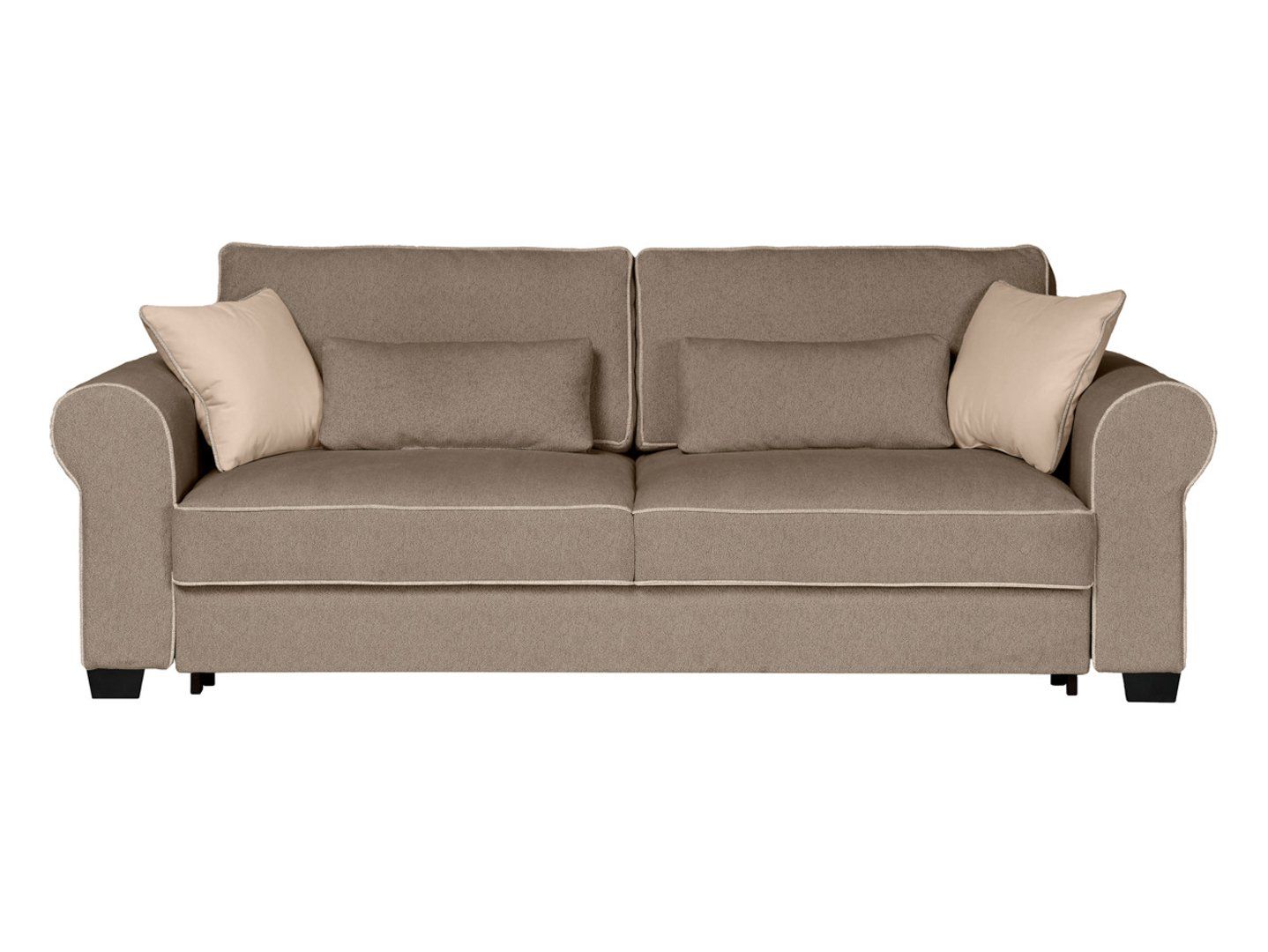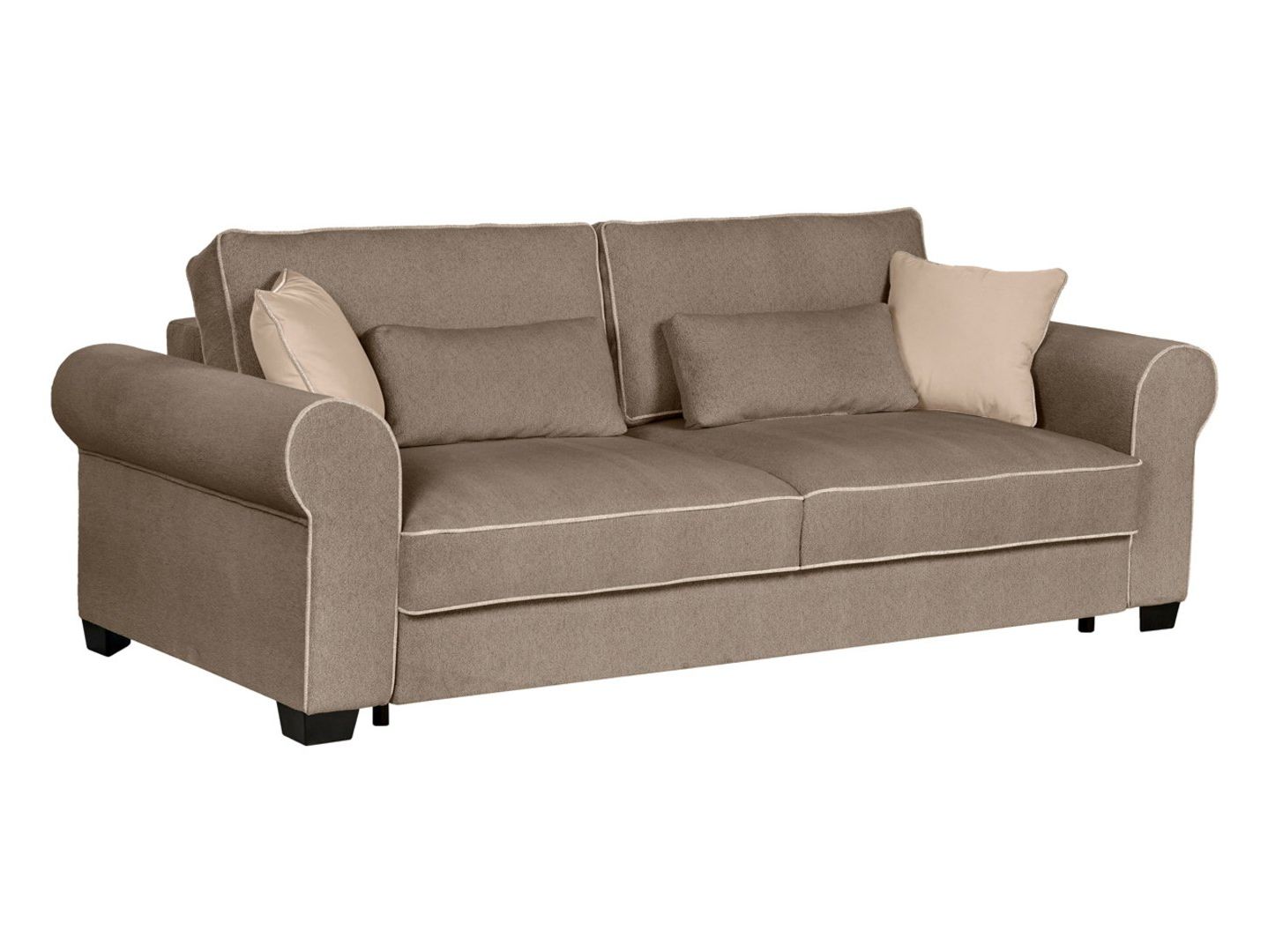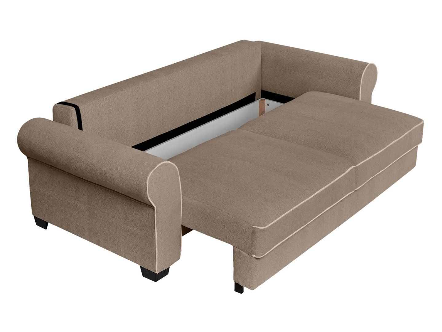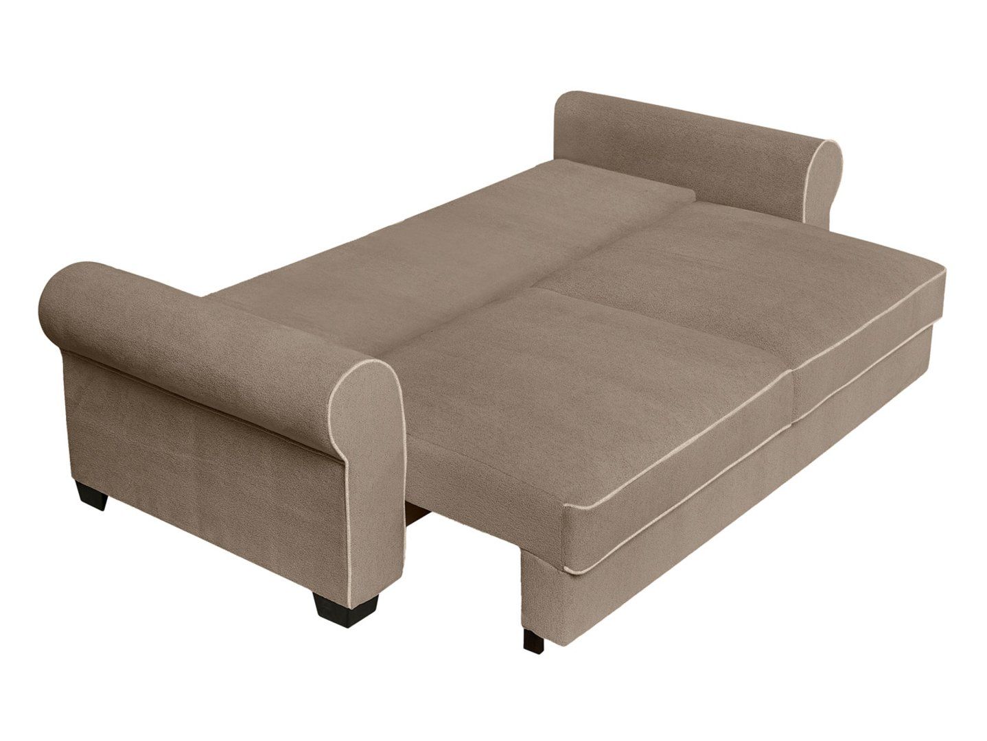 „Elizabeth“ sofa – klasikinė elegancija ir patogumas viename. Patogumas ir funkcionalumas. „Elizabeth“ sofa puikiai tinka tiems, kurie nori suderinti jaukią atmosferą su kasdienio naudojimo patogumu. Dėl DL tipo atlošo mechanizmo vos per kelias akimirkas ją galite paversti erdvia 165 x 198 cm lova. Putplasčio užpildas kartu su banguotomis ir „Bonnell“ spyruoklėmis suteikia optimalią kūno atramą, užtikrindamas komfortą tiek sėdint, tiek miegant. Praktinės savybės: patalynės skyrius po sėdyne leidžia lengvai laikyti antklodes, pagalves ir apklotus. Keturių dekoratyvinių pagalvėlių komplektas padidina komfortą ir suteikia interjero dizainui išskirtinumo. Dizainas ir stilius: klasikinę „Elizabeth“ sofos formą paryškina minkštas „Raven 34“ audinio apmušalas ir dekoratyvinės siūlės. Apvalūs porankiai suteikia jai elegantišką charakterį, o didelis atlošas ir dekoratyvinės pagalvėlės suteikia svetainei jaukumo ir šilumos. Savybės: Trivietė sofa su miegojimo funkcija, Miegamasis plotas: 165 x 198 cm, DLS tipo atlošo mechanizmas, Sėdynė: porolonas, Bonnell spyruoklės ir banguotos spyruoklės, Patalynė, Keturios dekoratyvinės pagalvėlės komplekte, Apvalūs porankiai, Apmušalų audinys: Raven 34, Dekoratyvinės siūlės pabrėžia eleganciją. Santrauka: „Elizabeth“ sofa – tai klasikinė, trivietė sofa su miegojimo funkcija, kurioje dera elegancija, patogumas ir praktiškumas. Dėl tvirto užpildo ir aukštos kokybės „Raven 22“ audinio ji taps dekoratyviniu elementu jūsų svetainėje ir kasdienio poilsio vieta.