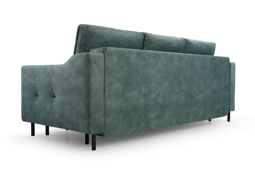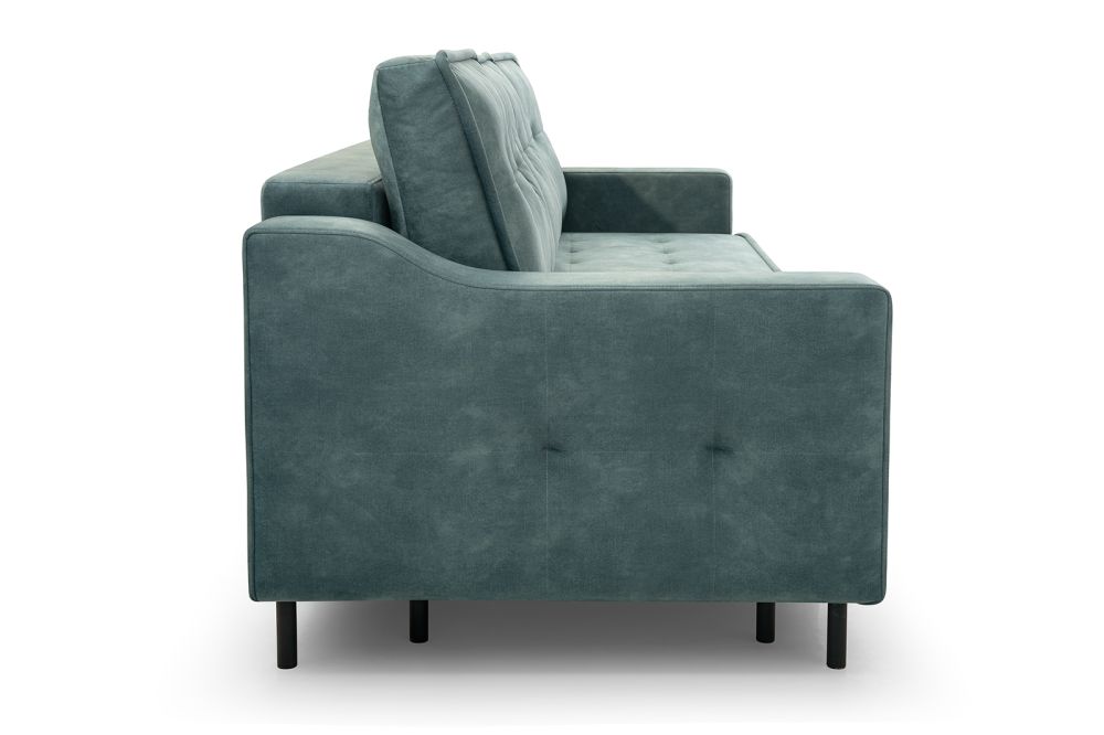 Jūsų pasirinktu audiniu aptrauktas atlošas, 3 patogios nuimamos pagalvėlės, kontūruoti porankiai ir dekoratyviniai raukiniai.