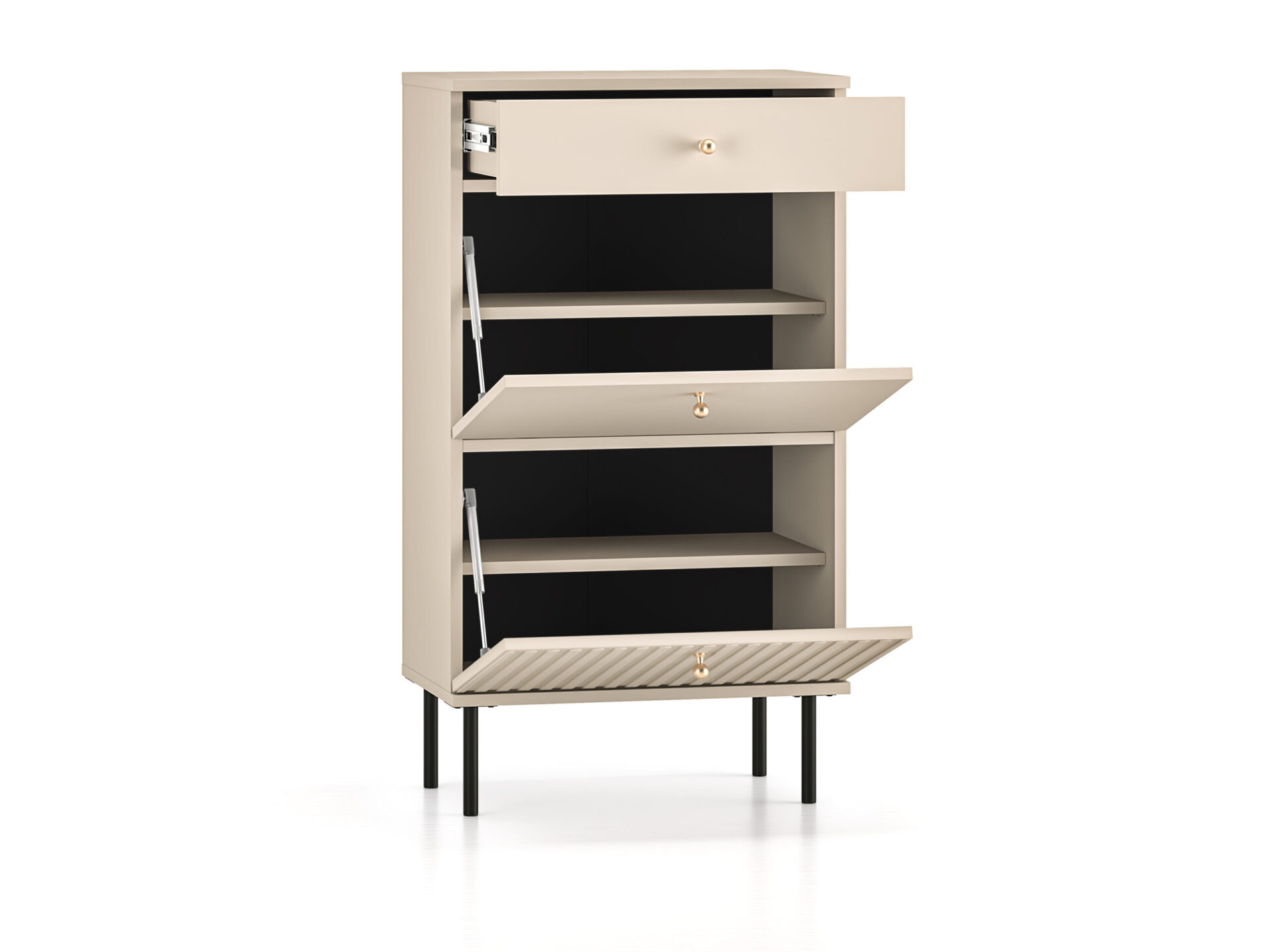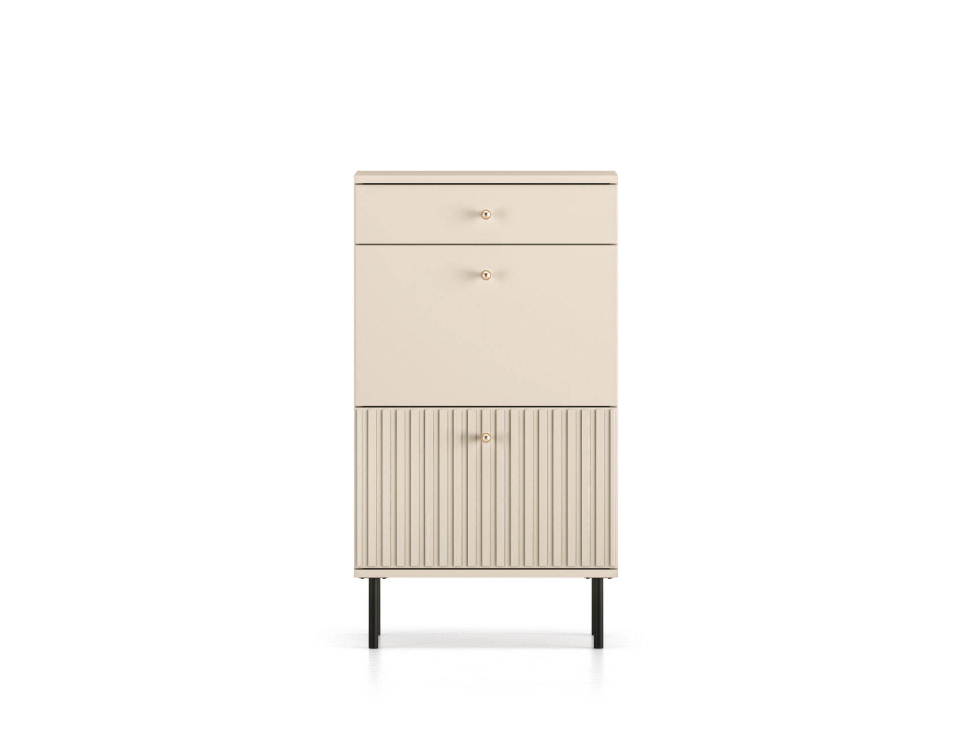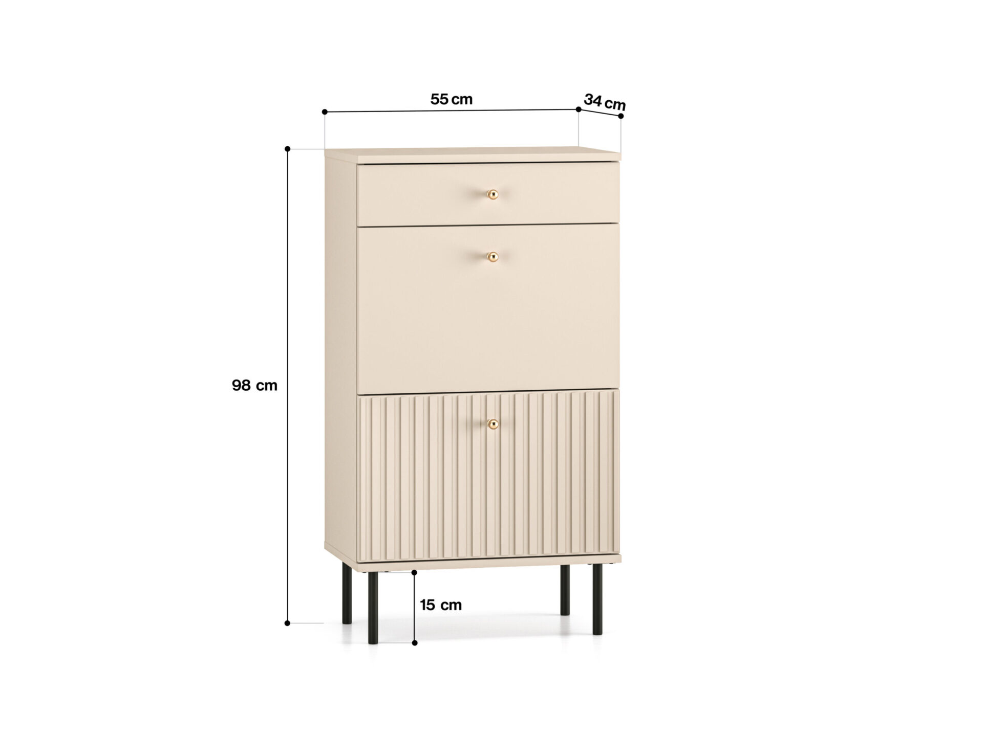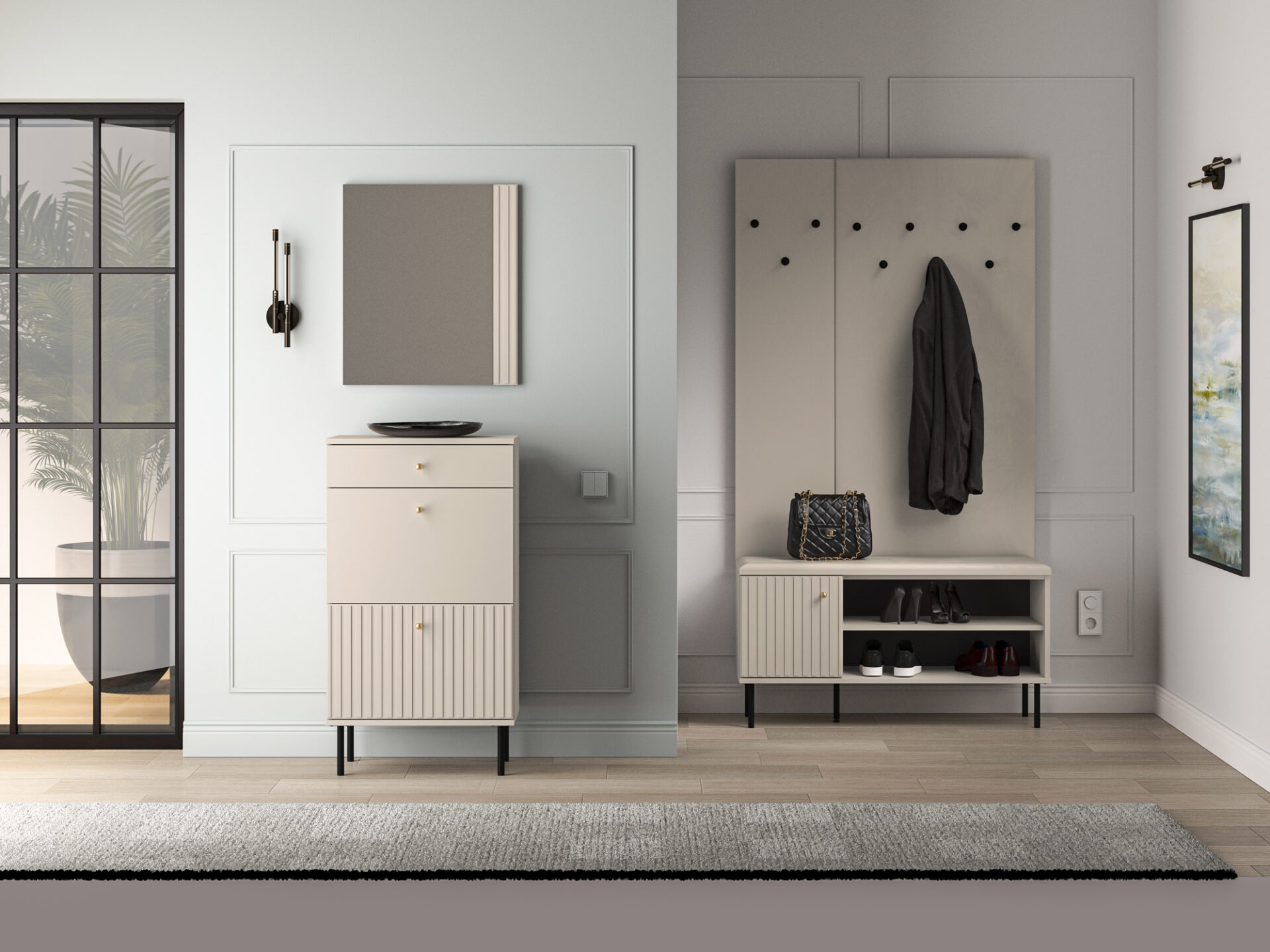 „Sophie 13“ batų spintelė sujungia aukštą funkcionalumą ir modernų dizainą. Dvi durelės leidžia lengvai laikyti batus net ir ankštiausiuose koridoriuose. Mažas, visiškai ištraukiamas stalčius puikiai tinka laikyti batų aksesuarus ar smulkius daiktus, tokius kaip šalikai ar kepurės. „Sophie 13“ – tai daugiau nei praktiškas sprendimas koridoriui. Mūsų baldai yra šiuolaikinės elegancijos sinonimas. Kašmyro dekoro detalės, frezuoti MDF fasadai, šlifuoto aukso spalvos rankenėlės ir diskretiškos juodos kojelės – tai visos „Sophie“ kolekcijos esmė.