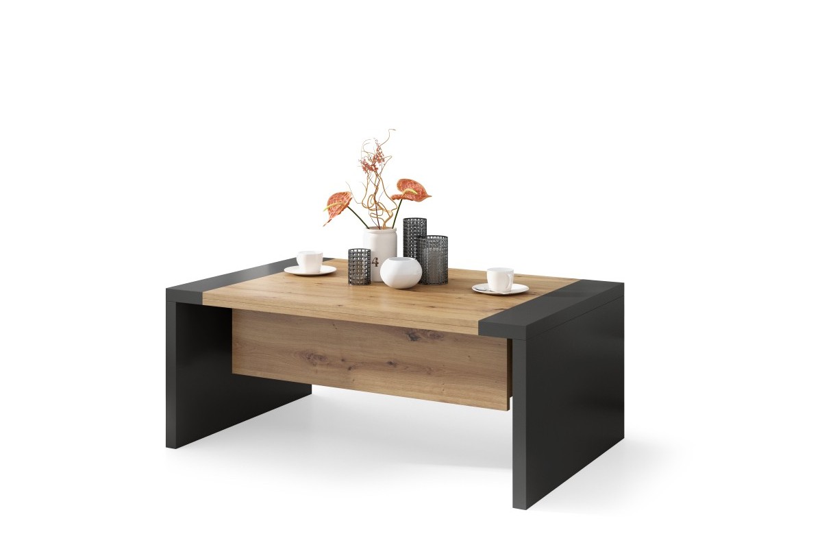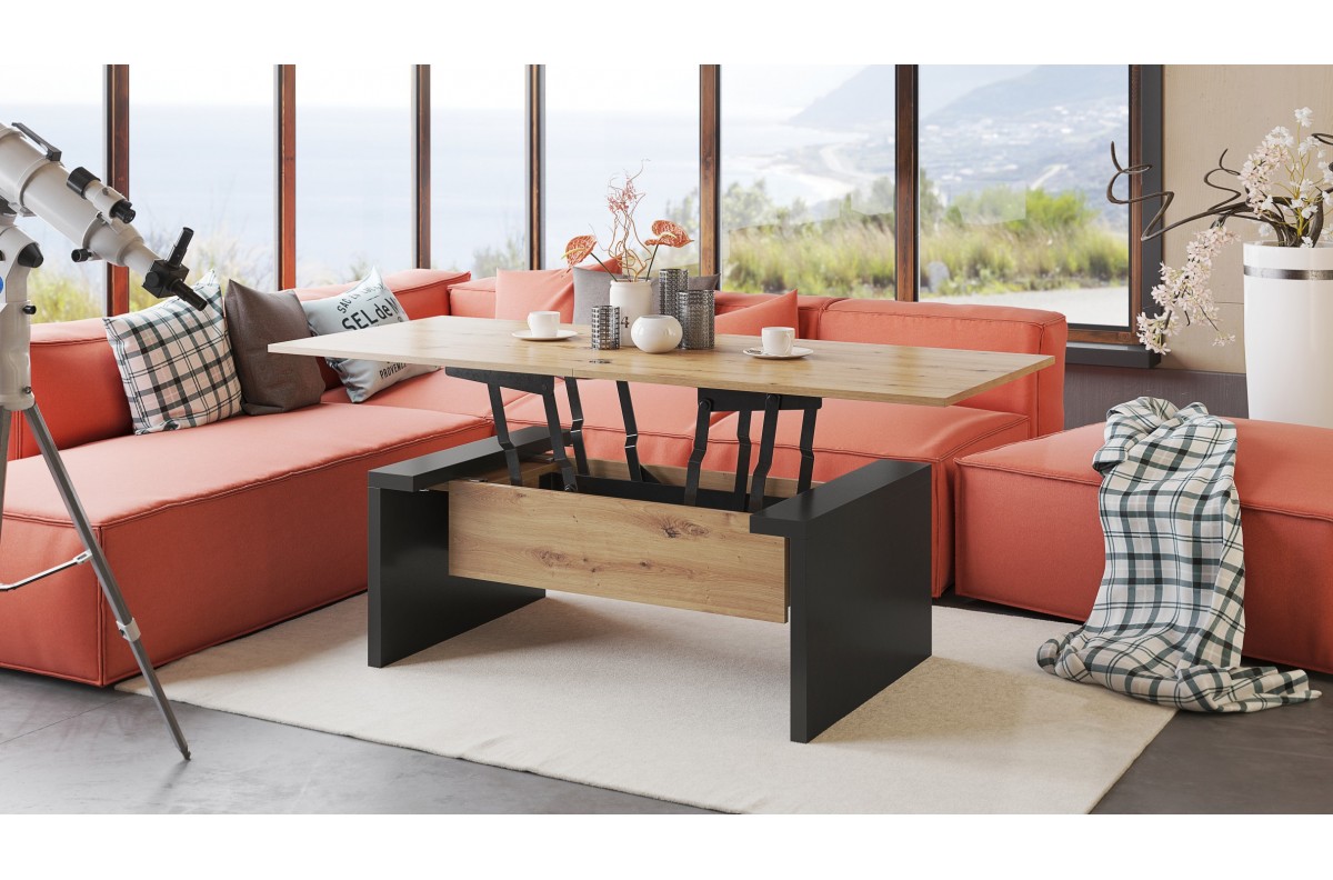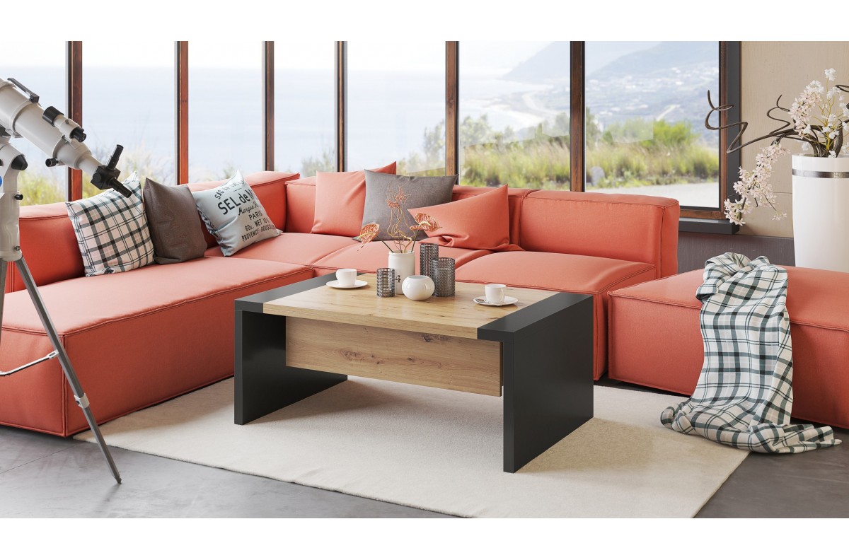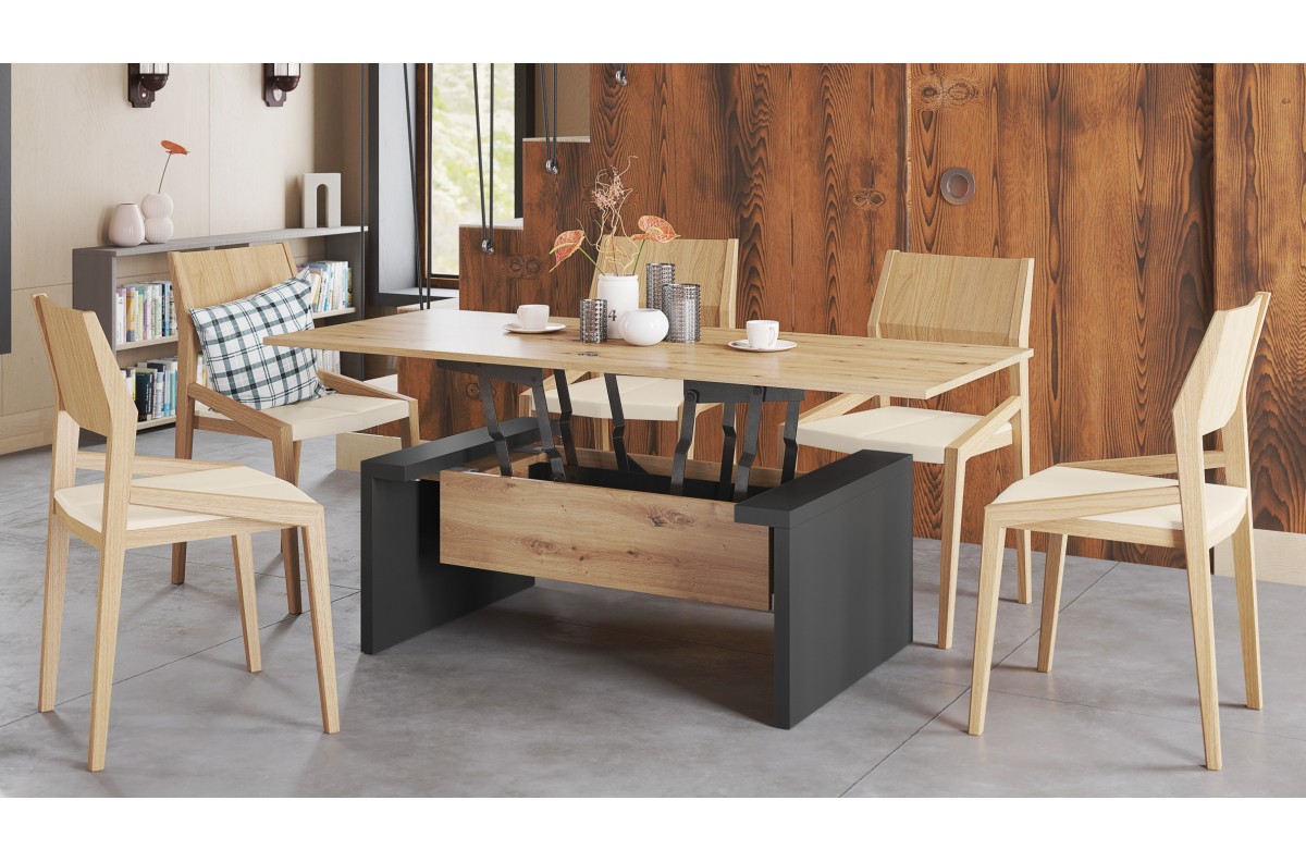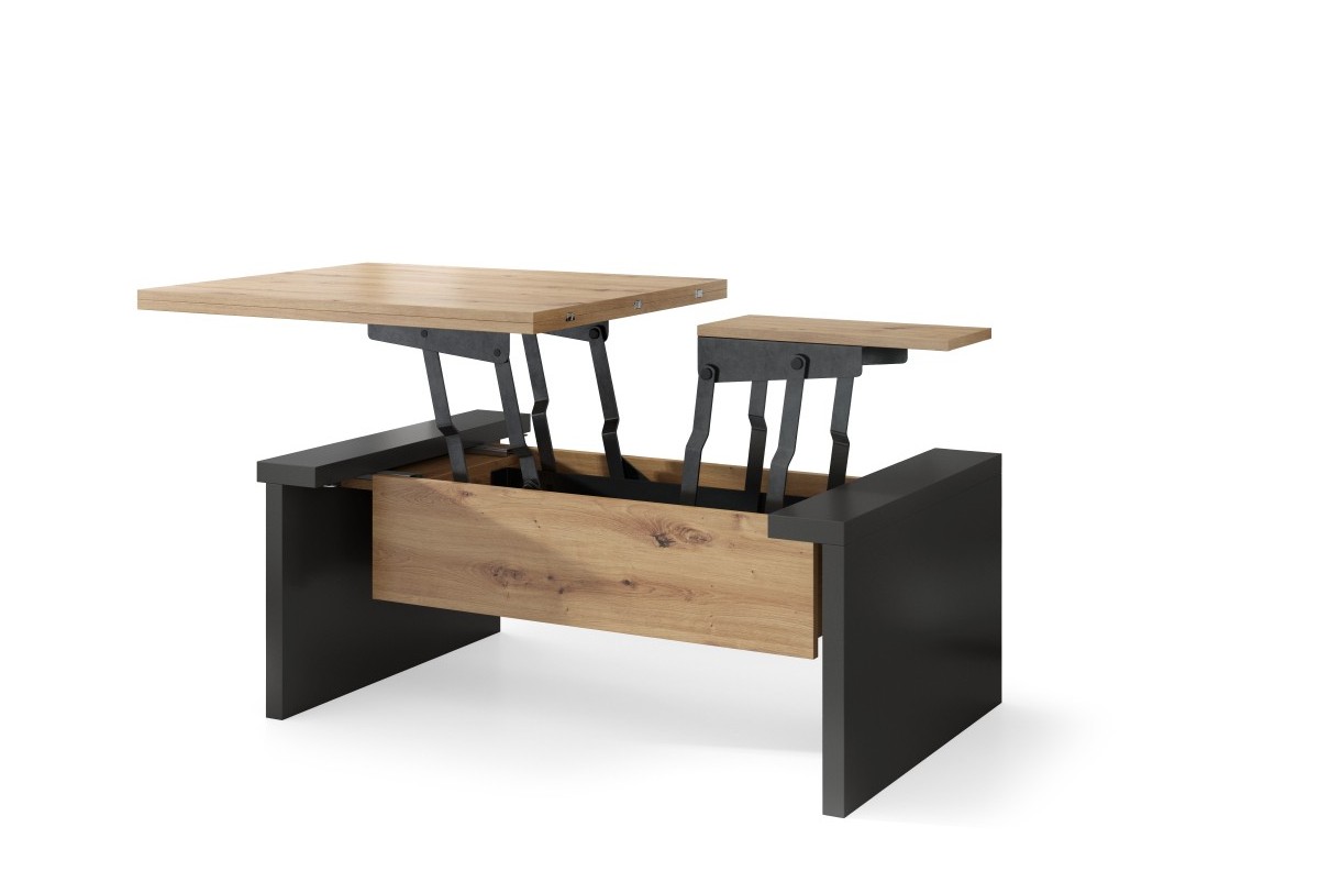 SPACE Artisan Oak/Anthracite (tamsiai pilka) – kavos staliukas su ištraukiamu ir pakeliamu stalviršiu