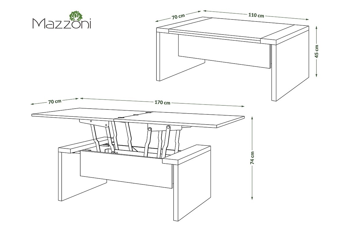 PLOTIS 110 cm / 170 cm, GYLIS 70 cm, AUKŠTIS 45 cm / 74 cm, MEDŽIAGOS Medžio drožlių plokštė, FUNKCIJA Ištraukiamas stalviršis (nėra, AUKŠČIO reguliavimo), PAVIRŠIUS Matinis, STILIUS Modernus, SVORIS SU PAKUOTE 61,5 kg
