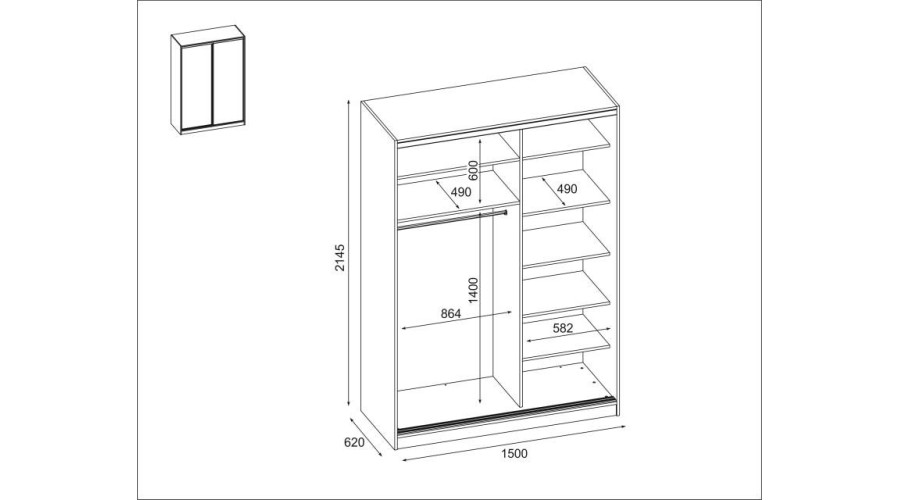Ši e-meblast.pl spinta turi stumdomų durų sistemą, kad būtų patogu naudoti ir taupoma vieta daiktams laikyti. Ji padalinta į dvi dalis, kurių kiekvienoje yra erdvios lentynos ir pakaba daiktams. Jei ieškote funkcionalios ir paprastos spintos, rinkitės aukštos kokybės lenkų gamintojo 2D/150 spintą.
