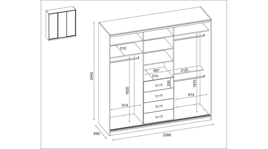 Spinta 3D/240 – lentynos, stalčiai, pakabos