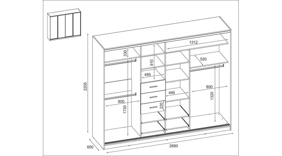 Spinta 4D/268 – pakabinimo bėgeliai, ištraukiamos lentynos, stalčiai