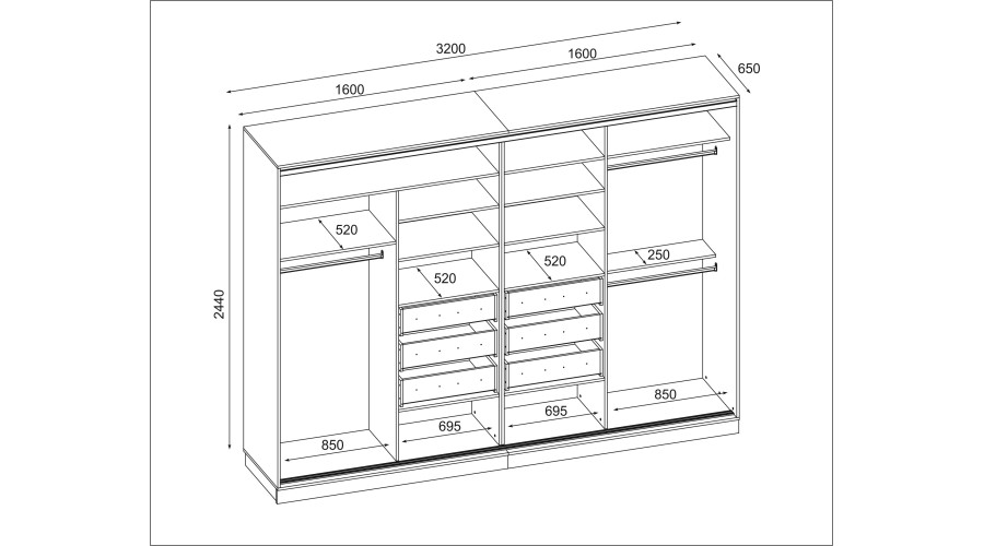 Spinta 4D/320 – stalčiai, lentynos, drabužių pakabos