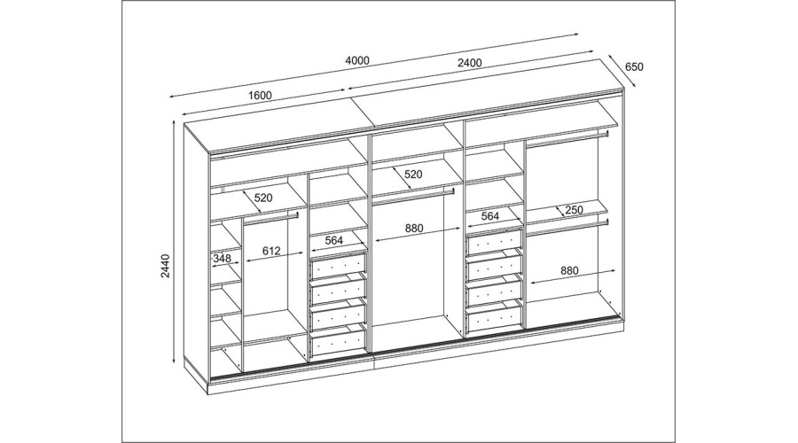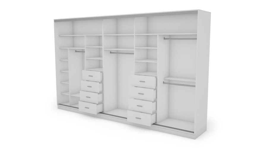 Spinta 5D/400 su pakabomis pakabinimui, ištraukiamomis lentynomis, vieta lyginimo lentai, stalčiais