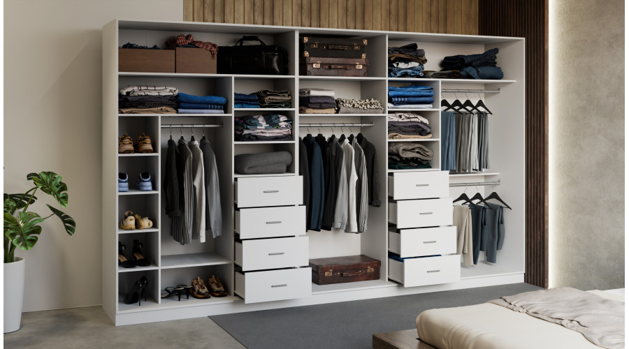Ši moderni e-meblast.pl spinta su stumdomomis durimis pasižymi didele talpa, todėl joje lengva susidėti visus drabužius, aksesuarus ir dėžes. Gilios lentynos puikiai tinka patalynei, rankšluosčiams, žieminėms striukėms ir kitiems daiktams, kurių nenaudojate kasdien, laikyti. Siekiant užtikrinti maksimalų funkcionalumą, spintą galima pritaikyti pagal jūsų individualius poreikius, pridedant arba pašalinant bėgelius, lentynas ir kt. Jei norite pakeisti savo spintos išvaizdą, susisiekite su mumis šiandien.
