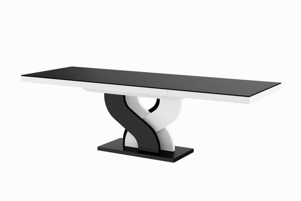 BELLA stalas 160(256)x89 blizgi juoda/blizgi balta, ištraukiamas
