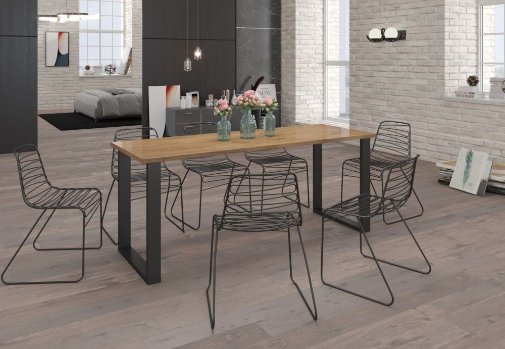 Imperatoriškas pramoninio lofto stiliaus stalas bet kokiam interjerui suteiks charakterio ir elegancijos. Stalviršis pagamintas iš 28 mm storio laminuotos plokštės su meniško ąžuolo apdaila.