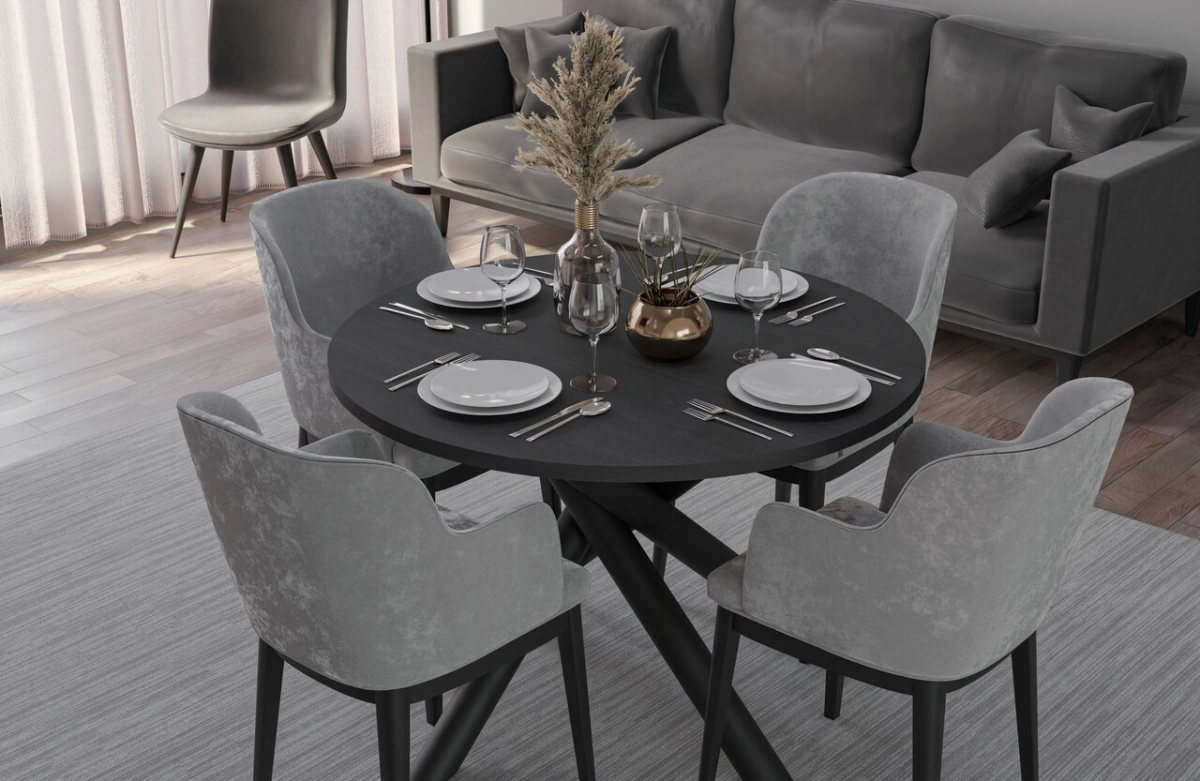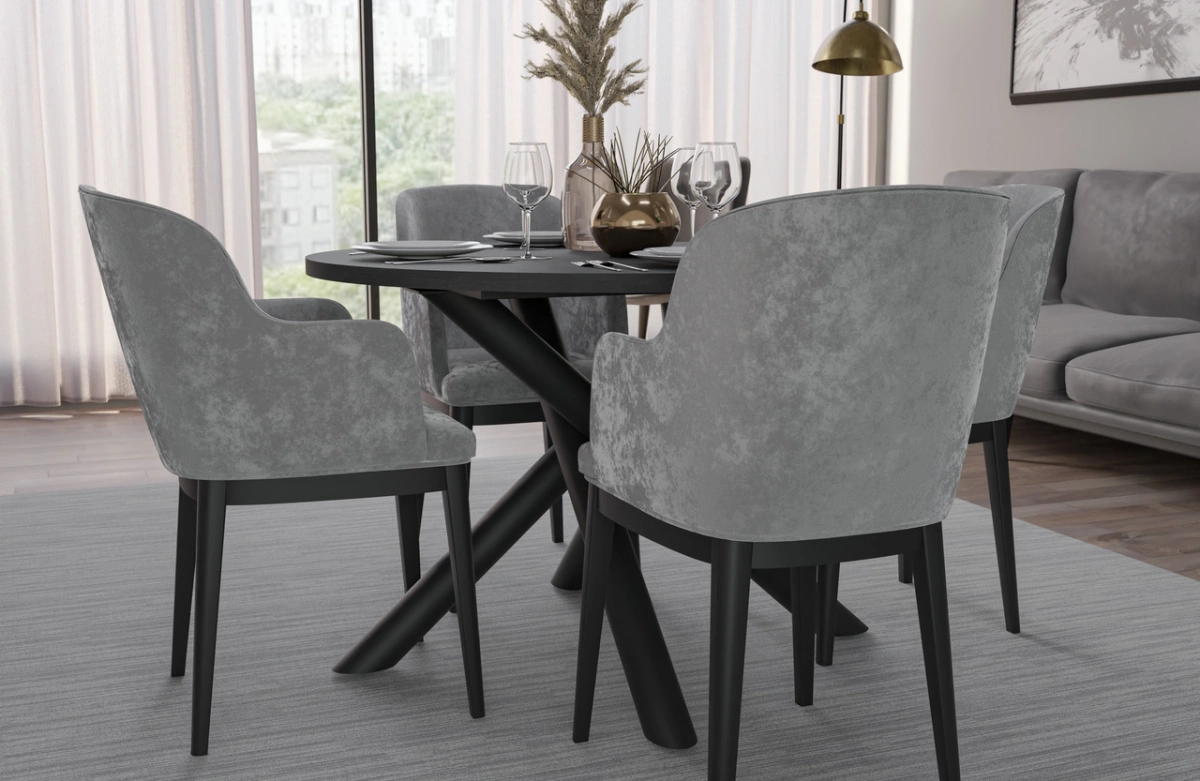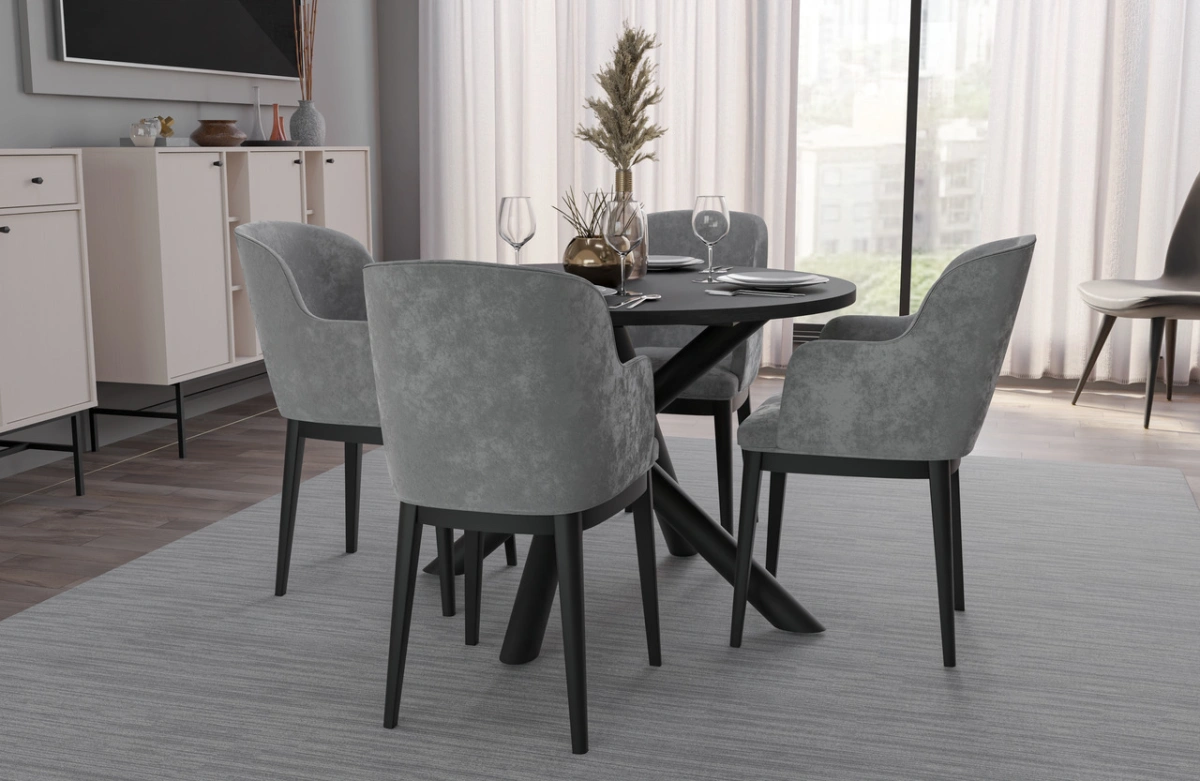 Modernių valgomojo stalų kolekcija, kurių stalviršiai pastatyti ant dekoratyvinių metalinių voratinklinių kojelių, pasižyminčių geometrine, šakota forma. Be estetinio patrauklumo, ši kojelių forma garantuoja tvirtą atramą net ir dideliems stalviršiams. Kartu su apvaliu arba ovaliu stalviršiu, kurį galima įsigyti keturių spalvų, visas baldas atrodo neįtikėtinai stilingai ir elegantiškai. OSLO stalai puikiai tinka modernaus, minimalistinio stiliaus, bet taip pat ir industrinio, prabangaus ar lofto stiliaus kambariams.