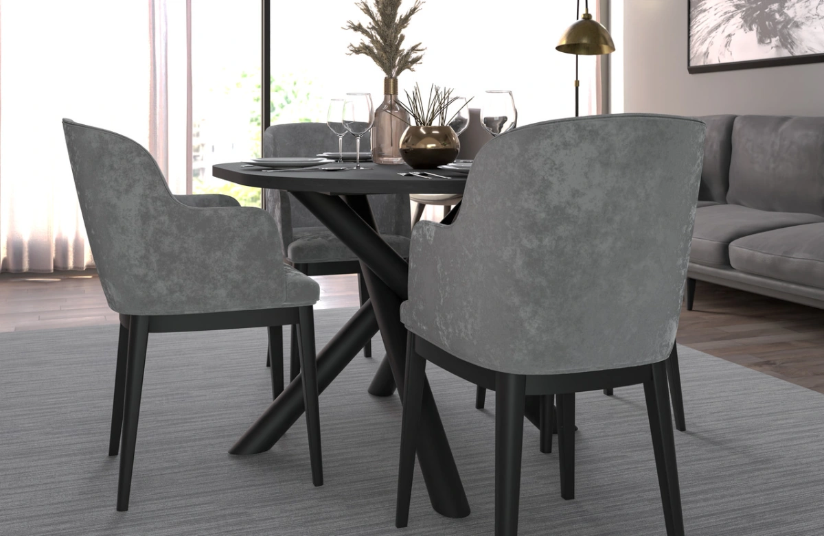 Modernių valgomojo stalų kolekcija, kurių stalviršiai pastatyti ant dekoratyvinių metalinių voratinklinių kojelių, pasižyminčių geometrine, šakota forma. Be estetinio patrauklumo, ši kojelių forma garantuoja tvirtą atramą net ir dideliems stalviršiams. Kartu su apvaliu arba ovaliu stalviršiu, kurį galima įsigyti keturių spalvų, visas baldas atrodo neįtikėtinai stilingai ir elegantiškai. OSLO stalai puikiai tinka modernaus, minimalistinio stiliaus, bet taip pat ir industrinio, prabangaus ar lofto stiliaus kambariams.