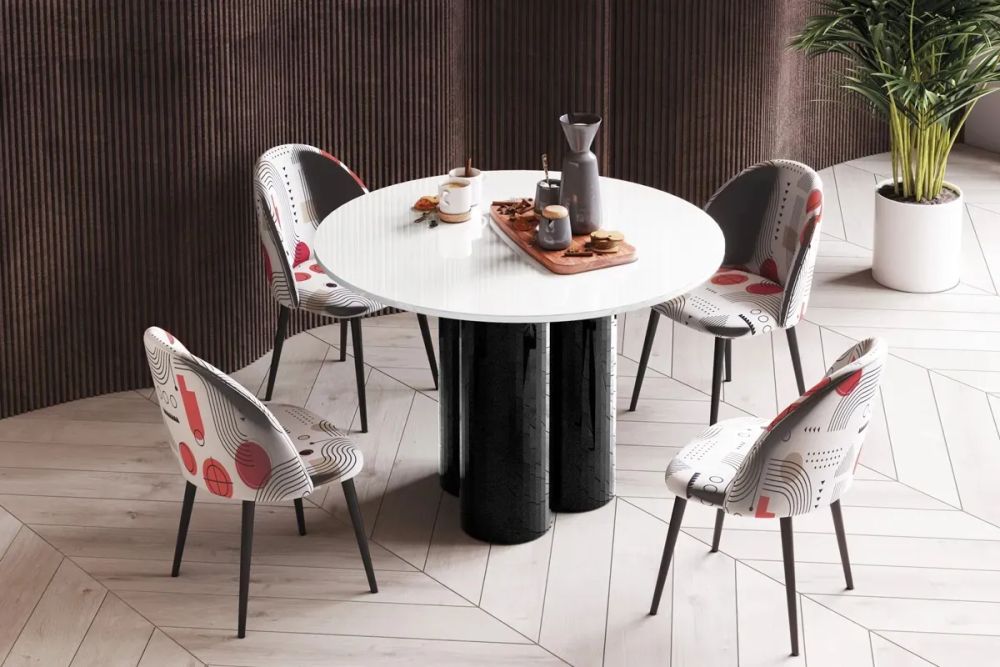 RAVEO apvalus stalas 100×100 baltas matinis/juodas blizgus