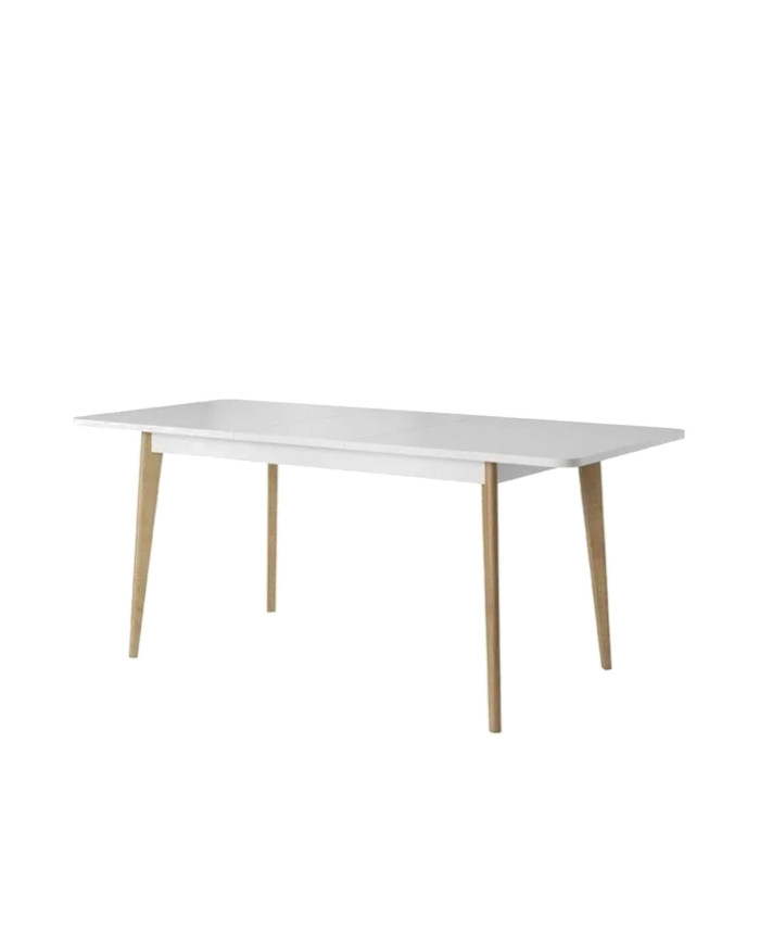 Nordi NST140 stačiakampis stalas, ištraukiamas, medinės kojos, 140-180/76/80 cm, baltas / Riviera ąžuolas