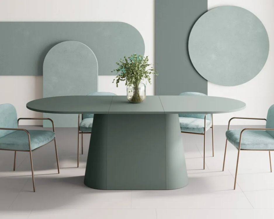 CAPITOLO išskleidžiamas stalas mėtų žalios spalvos su dryžuota koja