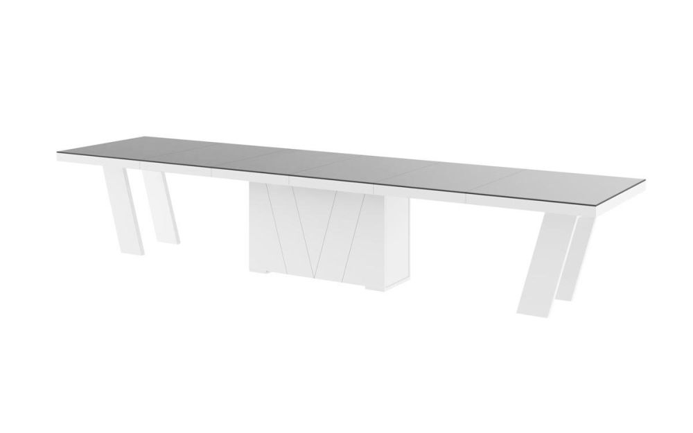GRANDE ištraukiamas stalas yra absoliutus baldų rinkos hitas dėl savo modernaus dizaino ir funkcionalumo. Stalviršis remiasi į dekoruotą koją, kurioje paslėptas skyrius stalviršio prailginimui. Šis dizainerio sukurtas stalas turi keturis ištraukiamus stalviršio įdėklus, kurių kiekvieną galima naudoti atskirai, todėl galite reguliuoti stalviršio dydį pagal savo poreikius ir pasiekti ilgį nuo 160, 223, 286, 349 arba 412 cm. Stalo ištraukimas yra labai paprastas ir lengvas dėl plieninių rutulinių guolių bėgelių. Be to, stalas turi keturias šonines kojeles, kurios išskleistas stabilizuoja stalviršį. Didžiausias šio stalo privalumas – prie jo telpa iki 22 žmonių.