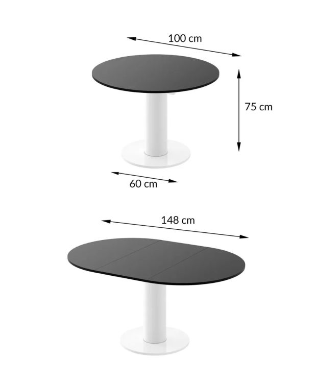 Ištraukiamas stalas SOLO LUX 100 – tai modernus baldas, kuriame dera minimalistinis dizainas ir pažangios technologijos, puikiai papildančios modernų interjerą. 100 cm skersmens stalviršis pagamintas iš aukštos kokybės MDF plokštės ir padengtas elegantiška balta matine spalva su antipirenų danga. Ši danga apsaugo paviršių nuo pirštų atspaudų, todėl jį lengva valyti ir jis apsaugo nuo nemalonių dėmių. Be to, matinė apdaila suteikia stalui subtilaus elegancijos, o pats stalas yra atsparus įbrėžimams, dėmėms ir kitoms kasdienėms dėmėms.