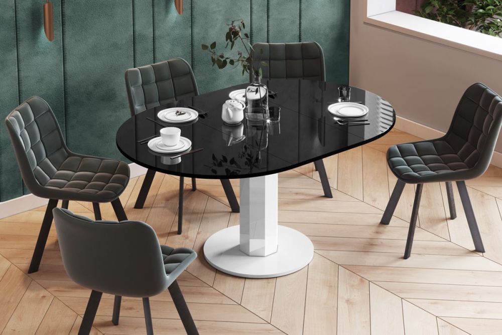 Ištraukiamas stalas SOLO – tai unikalus lenkiškas gaminys, sukurtas galvojant apie modernų interjerą. Minimalistinis dizainas ir madingos spalvos puikiai tinka bet kokiam dekorui, nepaisant dabartinių tendencijų. Pagamintas iš aukštos kokybės MDF plokštės, padengtos akriliniu kilimėliu, suteikiančiu jam elegantišką blizgesį, primenantį žvilgantį veidrodį, stalas išsiskiria ne tik savo stiliumi, bet ir patvarumu. Pagrindinis šios medžiagos privalumas – padidėjęs atsparumas įbrėžimams, UV spinduliams ir aukštai temperatūrai iki 100 °C, todėl jis yra itin patvarus ir lengvai prižiūrimas. Gamintojas rekomenduoja švelniai valyti stalą šiek tiek drėgna mikropluošto šluoste, nenaudojant ploviklių, kad jis ilgiau išlaikytų puikią išvaizdą. Vienakojas stalas ne tik garantuoja stabilumą, bet, svarbiausia, suteikia patogų sėdėjimą. Jo konstrukcija leidžia patogiai naudotis, nerizikuojant susitrenkti kojų. Stalas turi sinchroninius rutulinius guolius, todėl jį nepaprastai lengva ir be vargo ištraukti. Tiesiog patraukite stalviršį iš vienos pusės, ir kita tuo pačiu metu ištrauks. Ištraukiamas stalas tiekiamas su vienu prailginimo įdėklu, kuris laikomas po stalviršiu. Apvalus SOLO ištraukiamo stalo stalviršis taip pat patogiai talpina daugiau žmonių nei tradiciniai keturkojai stalai, todėl tai puikus pasirinkimas šeimos susibūrimams ar vakarėliams su draugais.