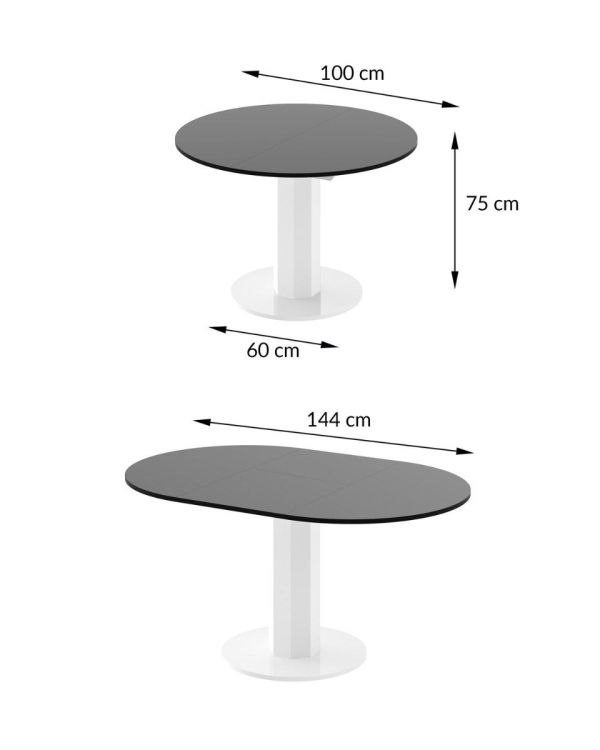 Ištraukiamas stalas SOLO – tai unikalus lenkiškas gaminys, sukurtas galvojant apie modernų interjerą. Minimalistinis dizainas ir madingos spalvos puikiai tinka bet kokiam interjerui, nepaisant dabartinių tendencijų. Stalas pagamintas iš aukštos kokybės melaminu dengtos plokštės, o viršutinė ir apatinė pagrindo dalys yra panašios į natūralią medieną, saulėto ąžuolo spalvos. Likę elementai yra nesenstančios juodos spalvos. Melaminu dengta plokštė pasižymi padidintu atsparumu įbrėžimams ir UV spinduliams, todėl ji neišbluks net ir pastatyta tiesioginiuose saulės spinduliuose. Dėl didelės stalviršio šiluminės varžos (iki 100 °C) lengva ant jo padėti karštus patiekalus. Stalas su viena koja ne tik garantuoja stabilumą, bet, svarbiausia, suteikia judėjimo laisvę sėdint. Jo konstrukcija leidžia patogiai naudotis, nerizikuojant atsitrenkti į kojas. Stalas turi sinchroninius rutulinius guolius, todėl jį nepaprastai lengva ir lengva ištraukti. Tiesiog patraukite stalviršį iš vienos pusės, ir kita išskleisis tuo pačiu metu. Ištraukiamas stalas tiekiamas su vienu prailginimo įdėklu, kuris laikomas po stalviršiu. Apvalus SOLO ištraukiamo stalo stalviršis taip pat patogiai talpina daugiau žmonių nei tradiciniai keturkojai stalai, todėl tai puikus pasirinkimas šeimos susibūrimams ar vakarėliams su draugais.