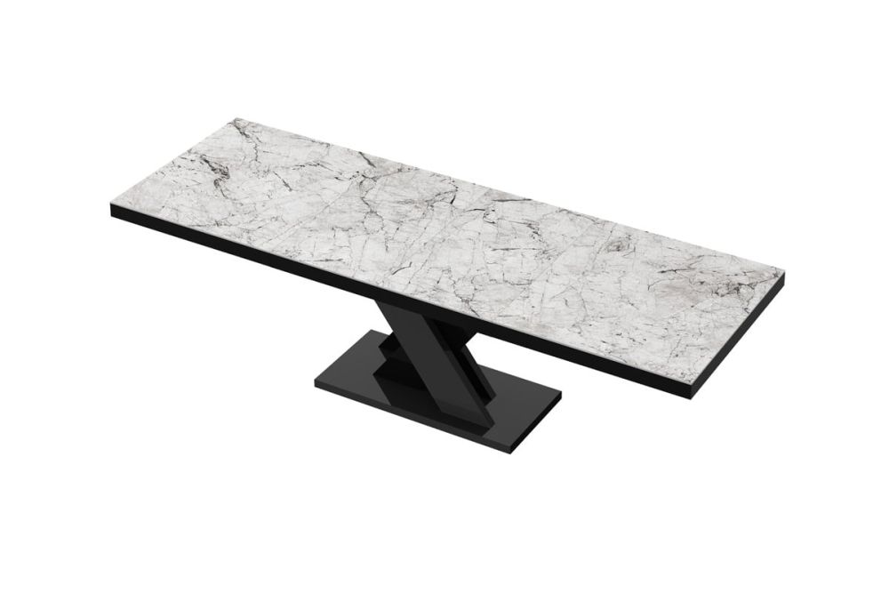 XENON LUX išskleidžiamas stalas 160(256)x89 baltas marmuras/juoda blizgi spalva