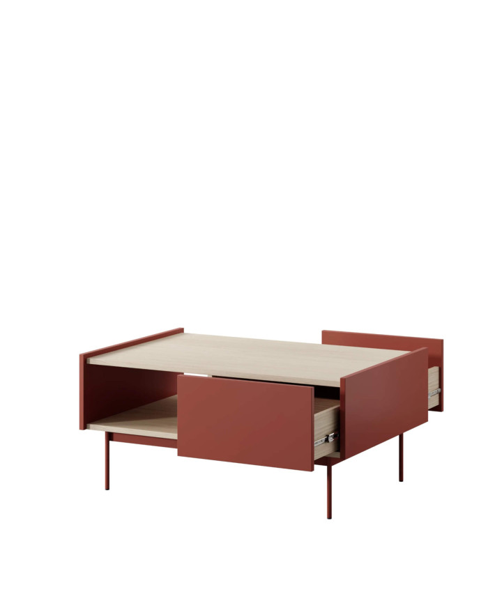 Kavos staliukas, COLOR L97, lentyna, stalčiai, keraminė raudona / Linea ąžuolas