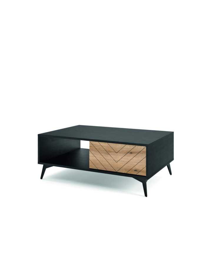 Kavos staliukas, Diamond L140 kavos staliukas, lentyna, stalčius, Evoke ąžuolas/juoda