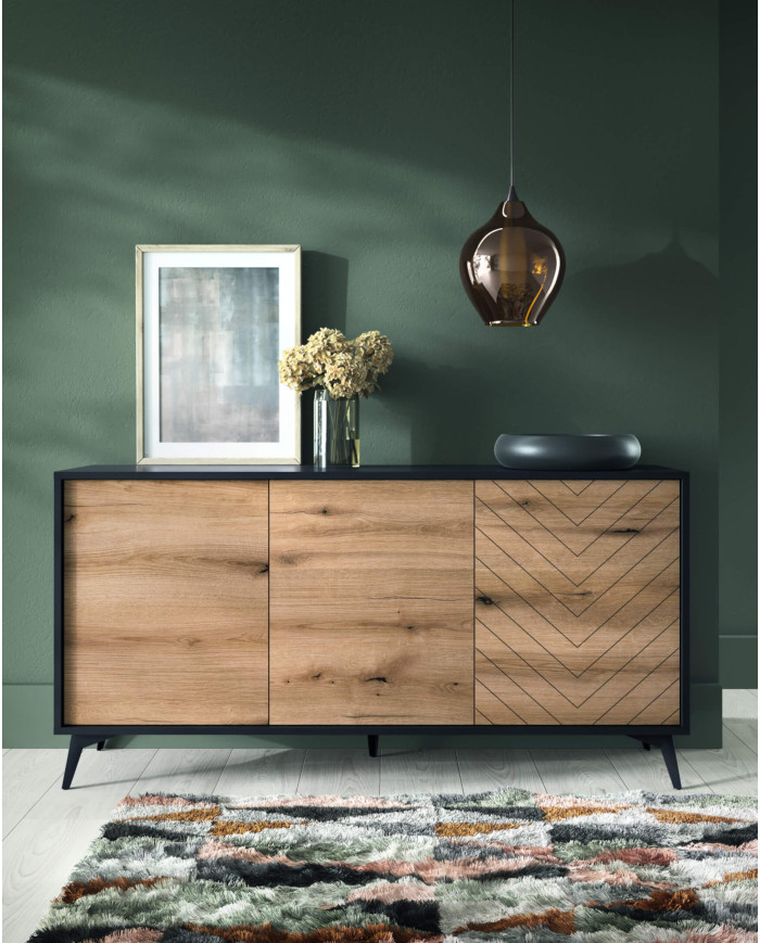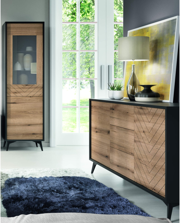 Stačiakampis “Diamond L140” kavos staliukas pagamintas iš laminuotos baldų plokštės, kuriai būdingas padidintas atsparumas įbrėžimams ir karščiui iki 100 °C. Kavos staliukas pasižymi „Evoke Oak/Black“ dizainu, jame yra praktiška lentyna ir erdvus stalčius po stalviršiu. Juodos metalinės kojelės pabrėžia baldo charakterį ir suteikia jausmingo lengvumo. Stalčiaus priekinę dalį puošia išskirtinis eglutės raštas. Staliukas yra platesnės to paties pavadinimo baldų kolekcijos dalis. Būtinas surinkimas, pateikiamas su aiškiomis instrukcijomis.