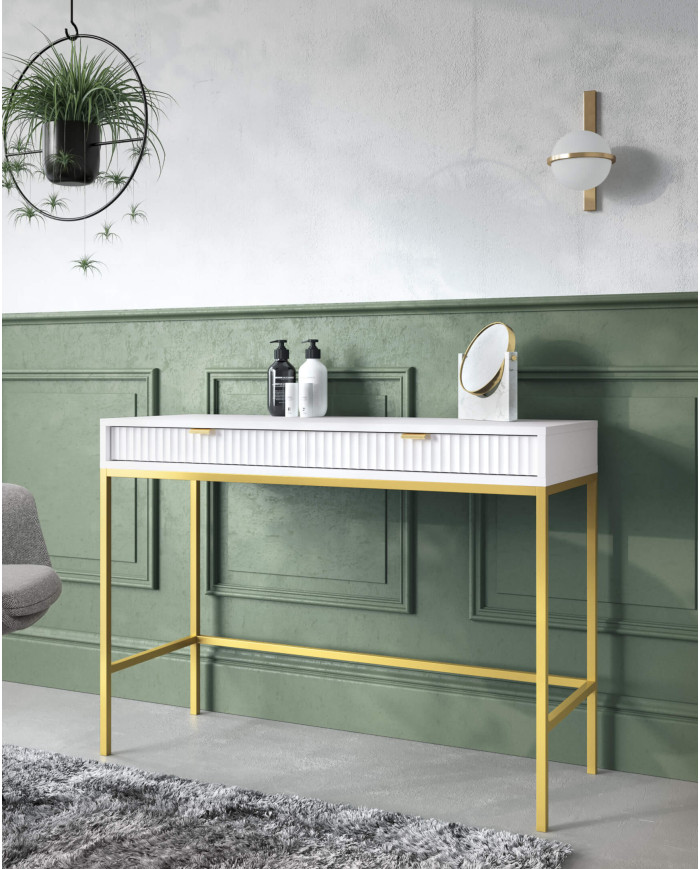 Nova L104 kavos staliukas, suoliukas, lentyna, stalčius, baltas/auksinis rėmas