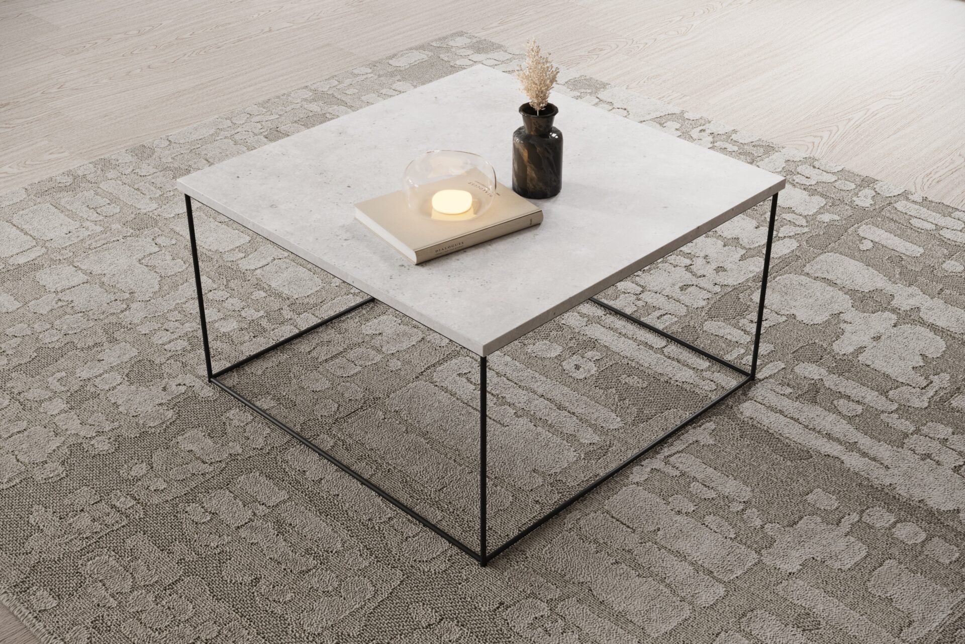 „Roni“ kavos staliukas – elegantiškas ir modernus baldas, puikiai tiksiantis bet kokiam šiuolaikiškam interjerui. Jis pasižymi kvadratiniu stalviršiu, pagamintu iš patvarios laminuotos plokštės, kuri yra atspari įbrėžimams ir lengvai valoma. Laminatas gali būti įvairių apdailos variantų, tokių kaip medžio imitacija, betonas arba vientisa spalva, todėl staliukas gali papildyti įvairius interjero dizaino stilius. Stalo pagrindas – unikali plieninės vielos koja, suteikianti stalui lengvumo ir industrinio charakterio. Viela tiksliai suformuota į geometrinį raštą, sukuriant įdomią, tačiau stabilią struktūrą. Metalinė koja gali būti matinės juodos, baltos arba kitos spalvos, taip dar labiau sustiprinant modernų stalo dizainą. „Roni“ kavos staliukas yra ne tik funkcionalus, bet ir estetiškai patrauklus, puikiai tinkantis svetainėms, skandinaviškoms, loftinėms ar minimalistinėms erdvėms. Dėl universalaus dizaino „Roni“ taps bet kurio interjero traukos centru.