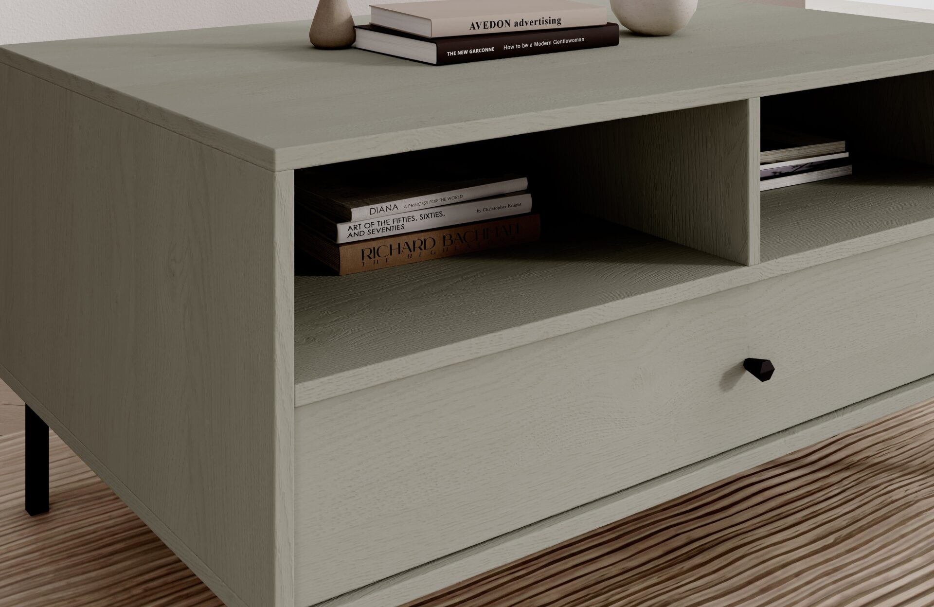 „Tili“ kavos staliukas – tai elegantiškas, modernaus dizaino baldas, kuris puikiai derės prie įvairių interjero stilių. Jo stalviršiai yra trijų rafinuotų spalvų: eukalipto, juodos ir smėlio spalvos, todėl jis puikiai papildys jūsų svetainės interjerą. Eukalipto spalva suteikia interjerui natūralumo ir gaivumo, juoda pabrėžia eleganciją ir nesenstantį stilių, o smėlio spalva suteikia šilumos ir subtilumo. Stalo konstrukcija pagaminta iš aukštos kokybės medžiagų, užtikrinančių patvarumą ir stabilumą. „Tili“ kavos staliukas derina funkcionalumą ir estetiką, puikiai papildydamas tiek modernų, tiek klasikinį interjerą.