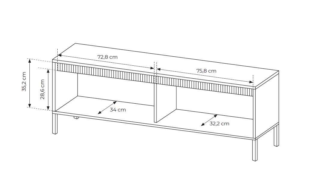 „Senso 153 2D“ televizoriaus stovas / staliukas su grioveliais priekyje – turi dvi atidaromas spinteles.