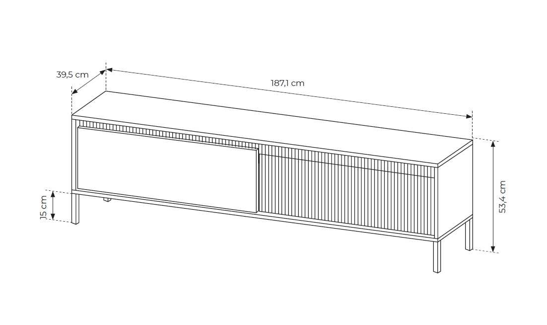 „Senso 187 2D“ televizoriaus stovas / staliukas su grioveliais priekyje – turi dvi atidaromas spinteles.