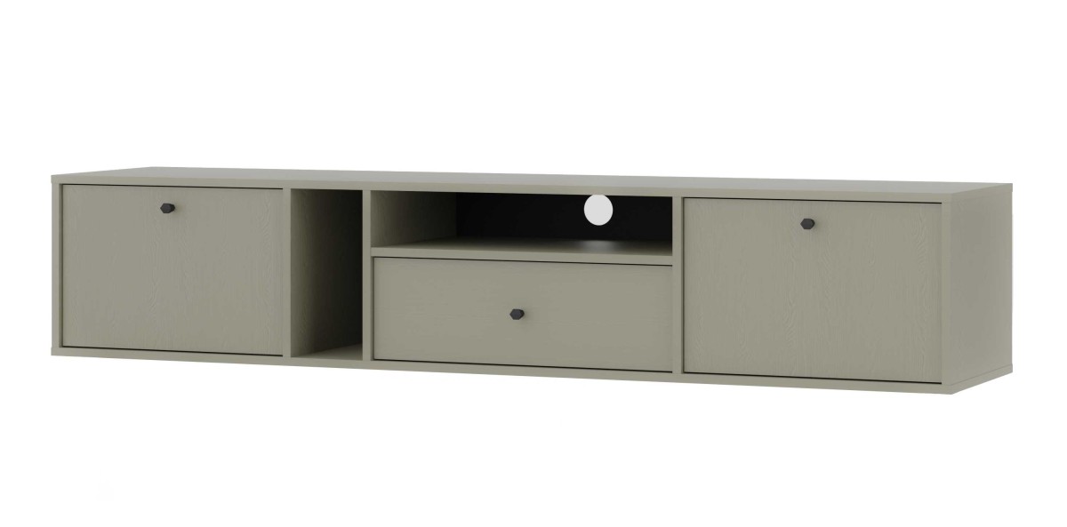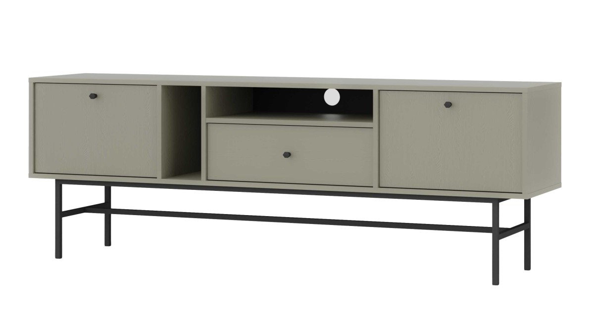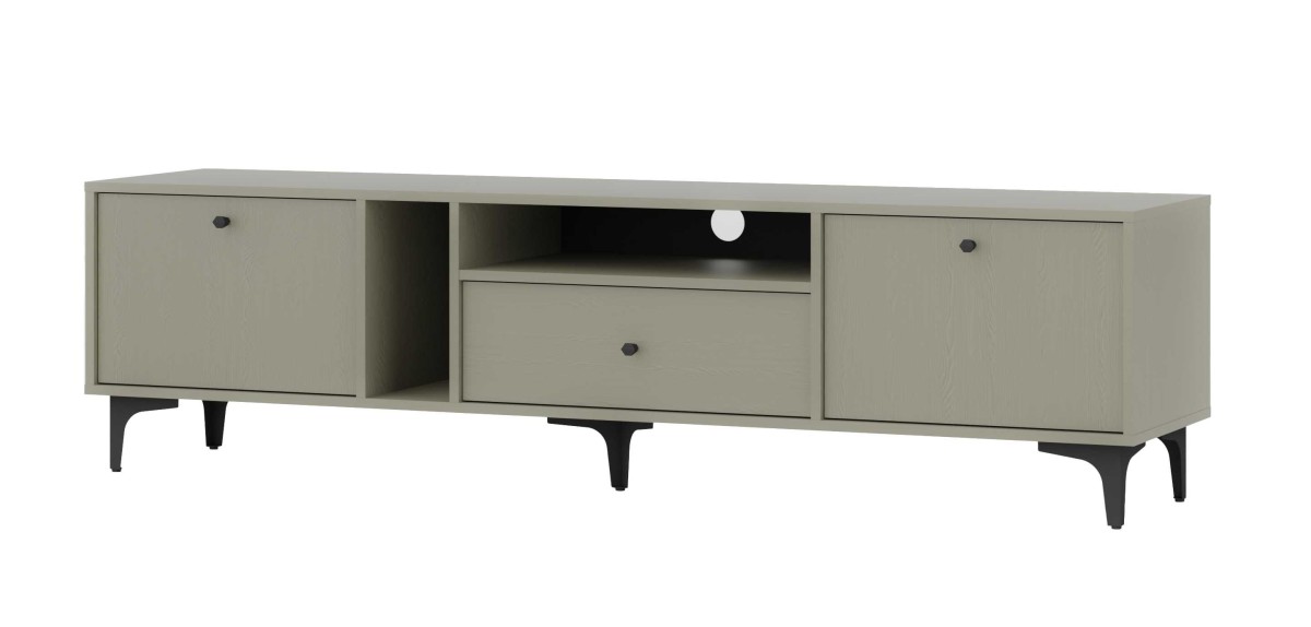 „Tokyo 2K1S Eucaliptus“ televizoriaus staliukas – su dviem spintelėmis – atvartais, stalčiumi ir niša.