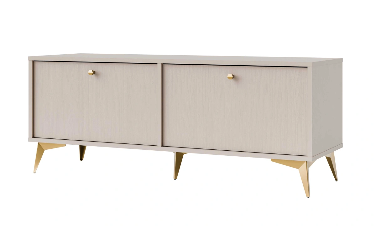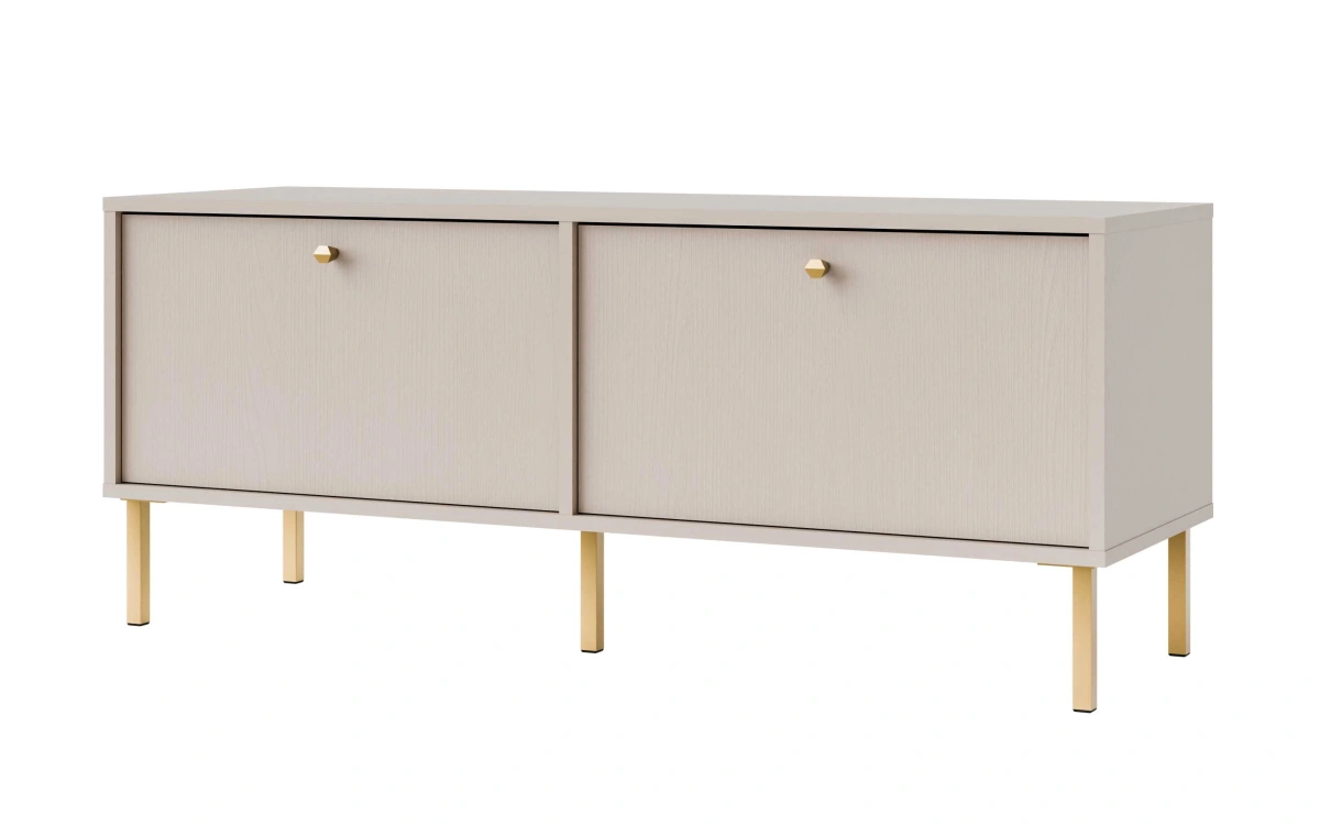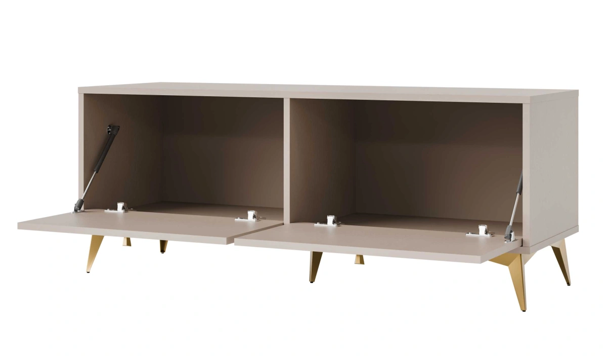„Tokyo 2K“ televizoriaus staliukas, smėlio spalvos – turi dvi spinteles su atvartais.