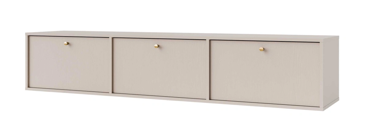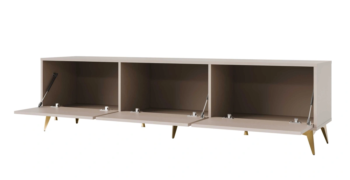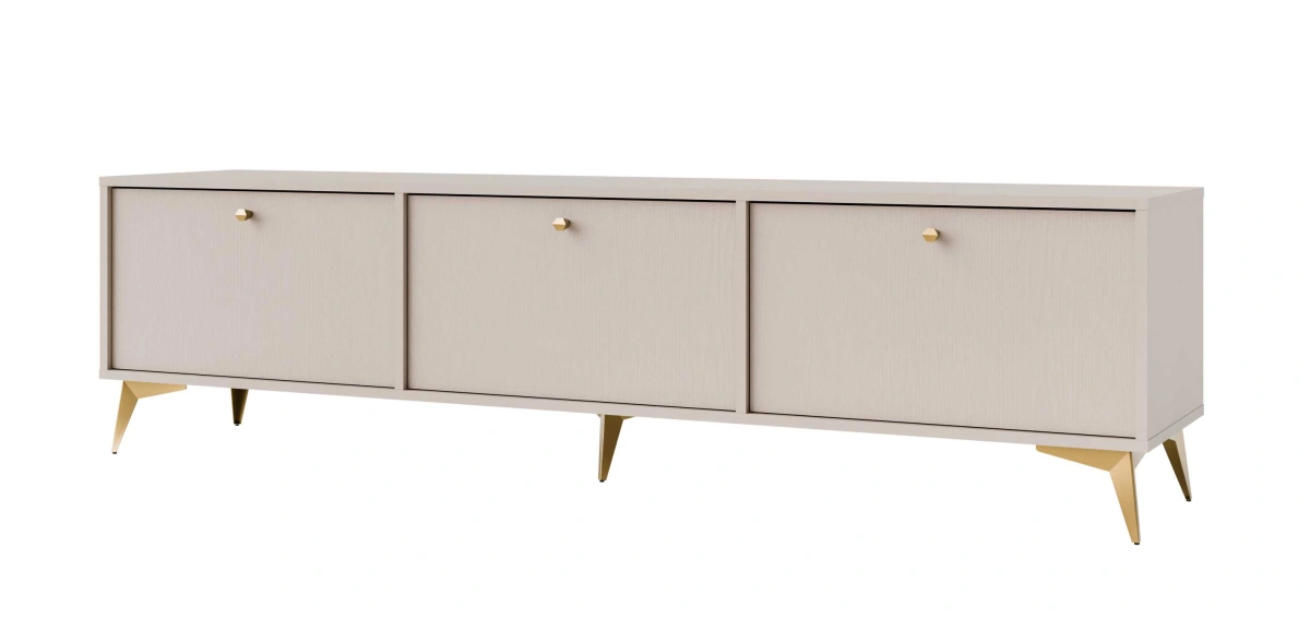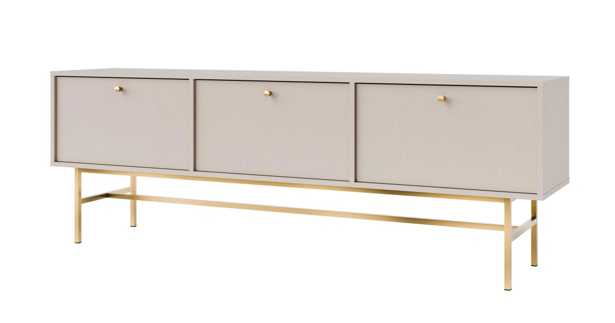 „Tokyo 3K“ televizoriaus staliukas, smėlio spalvos – turi tris spinteles su atvartais.