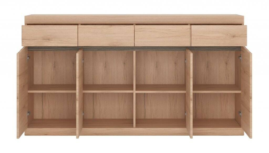„Summer TYPE 40“ komoda – tai modernus daiktų laikymo centras, kuris jūsų svetainei suteiks harmonijos ir elegancijos. Ši erdvi „San Remo Light/Arusha“ linijos komoda – tai tobulas funkcionalumo ir modernaus dizaino derinys, o išskirtinė „San Remo Light“ ir „Arusha“ spalvų apdaila – tikras akių malonumas. Didžiuojamės galėdami pristatyti baldą, kurio matmenys – 168 cm pločio, 92,1 cm aukščio ir 39,9 cm gylio – leidžia susidėti įvairiausius daiktus – nuo dekoracijų iki visų būtiniausių aksesuarų. Apgalvotas dizainas siūlo keturis erdvius stalčius ir keturias dureles, leidžiančias paslėpti viską, ką norite paslėpti, išlaikant tvarką ir estetiką. Pagaminta iš aukščiausios kokybės medžiagų, ji užtikrina patvarumą ir patikimą naudojimą ilgus metus. Komoda pagaminta iš laminuotos plokštės, kuri yra labai atspari pažeidimams, įbrėžimams, drėgmei ir aukštai temperatūrai. MDF fasadai garantuoja tvirtumą ir elegantišką išvaizdą, kuri atlaikys laiko išbandymą.