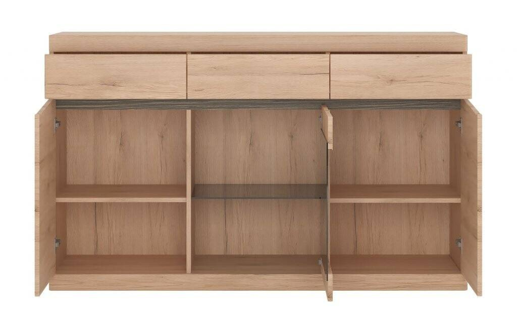 Atraskite unikalų elegancijos ir funkcionalumo derinį – „Summer TYPE 43“ vitriną, kuri veiksmingai pagyvins jūsų interjero erdvę. Tai ne tik daiktų laikymo spintelė, bet ir tikra bet kurio kambario puošmena. Siūlome „San Remo Light“ ir „Arusha“ spalvų spinteles, kurios puikiai dera su dabartinėmis interjero dizaino tendencijomis. Dėl meistriško modernių medžiagų, tokių kaip laminuota plokštė ir MDF, derinio „Summer TYPE 43“ vitrina yra labai atspari kasdieniam naudojimui. Natūralių atspalvių apdaila suteikia jai šiltą, jaukų pojūtį, o bendrą dizainą papildo praktiška ir estetiškai patraukli apdaila. „Summer TYPE 43“ vitrinos matmenys – 150 cm pločio, 92,1 cm aukščio ir 39,9 cm gylio – garantuoja puikią talpą ir funkcionalumą. Spintelėje yra šešios erdvios lentynos, iš kurių keturios elegantiškai paslėptos už tvirtų fasadų, todėl puikiai tinka daiktams, kuriuos norite laikyti nematomus. Dvi papildomos lentynos už stiklinio fasado leidžia eksponuoti dekoracijas ar stalo įrankius, todėl baldas yra itin praktiškas sprendimas.