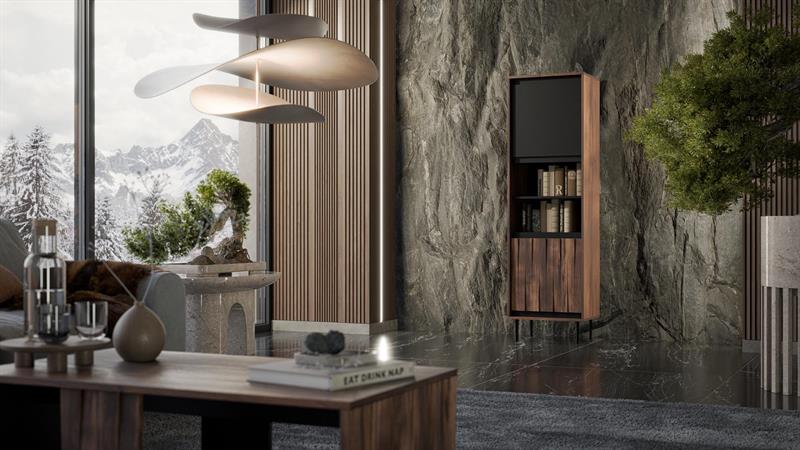 Būkite pirmas aprašęs “SWING W-1 vitrina, riešuto spalvos / juoda”